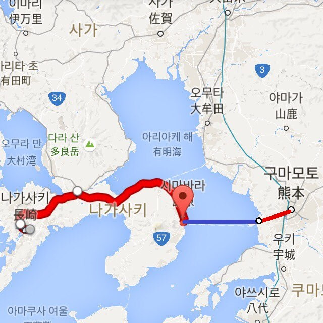중간에 페리를 타는 것도 좋겠다 싶기도 해 시마바라 경유 노선을 택했다.