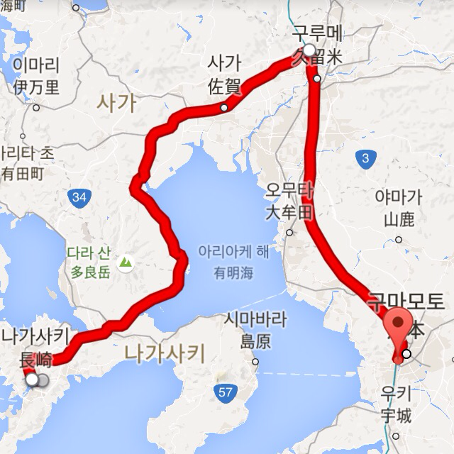 구마모토로 가는 여정은 이렇다.