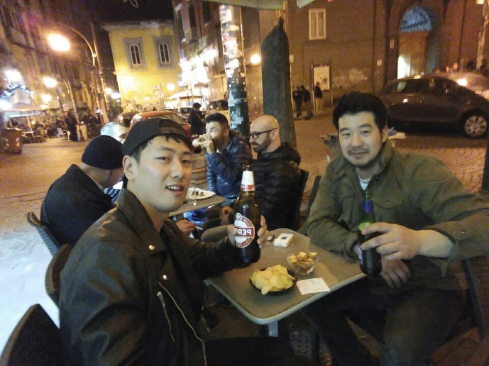 최씨형님과 이곳을 한바퀴 쭉 돌아본 다음 벨리니 광장 앞 맥주집 야외 테이블에 자리를 잡았다. 최씨형님은 나폴리 피자 만드는 법을 배우기 위해 이곳 피자집에서 한달가량 일을 해오는 중이라고 했다. 원래 한국에서 일식집 3곳을 운영했는데 나폴리 화덕 피자로 종목을 바꾸기로 마음을 먹고 사업을 정리하고 이곳에 왔다고 한다.