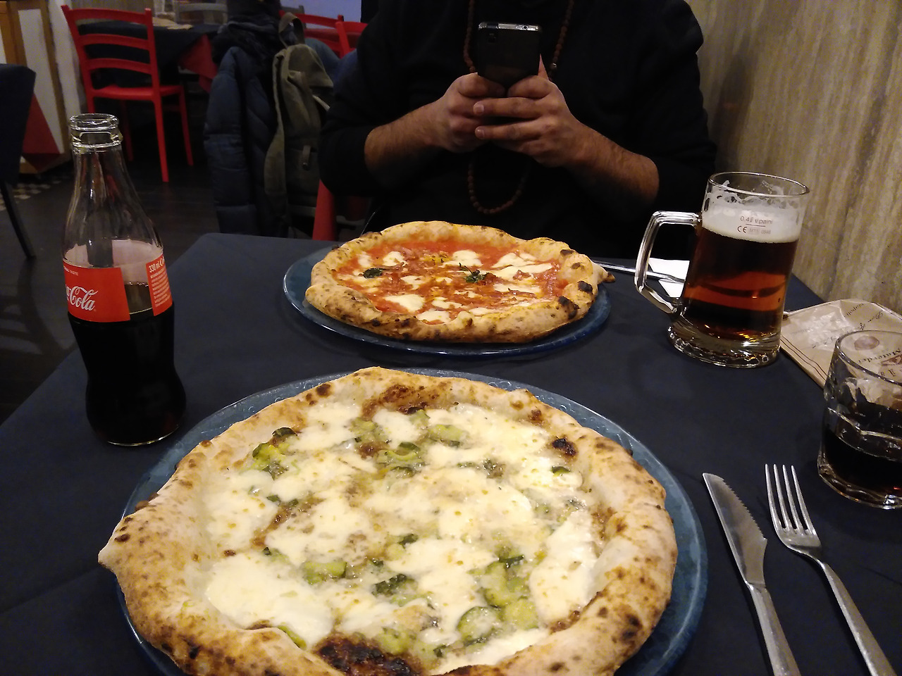 그 유명세에도 불구하고 이 식당은 서민적인 편안한 분위기를 풍겼다. 가격도 피자 한판이 5~7유로 정도고, 마르게리따는 4.5유로였다. 낮에 폼페이에서 마르게리따를 먹었던 터라 다른 것을 시도해보기로 했다.