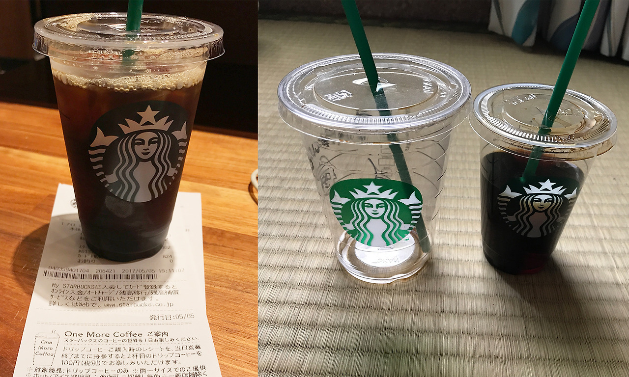 일본의 스타벅스는 적립식 카드나 모바일앱(이하 리워드)을 이용한다고 해도 별도의 혜택이 없어요. 한국에서는 리워드를 통해서 결제하면 대략 천 원 이상 결제마다 한 개의 별을 적립해주고 별 12개를 모으면 무료 음료 쿠폰이 발행되고 일반적인 음료의 톨 사이즈로 제공되는데요. 메뉴판 기준 금액이 제일 높은 그린티 크림 (6300원)을 12등분으로 할 경우 음료 한 컵을 마실 때마다 525원의 혜택을 받을 수 있다는 기준이 되네요. 그리고 한국에선 리워드로 결제 시 경우 한 개의 Free Extra가 제공돼요. 은근히 모르시는 분들이 많은데 음료에 추가하는 에스프레소 샷, 시럽, 토핑, 휘핑 등 중 한 개가 무료로 제공된다는 것이죠. 일반적으로 500원 정도 씩 하니 첫 번째 혜택과 함께 적용해보면 매회 음료를 마실 때마다 약 1000원에 해당하는 혜택이 한국에는 있지만 일본에는 전혀 없다는 거예요. (일본에서도 텀블러 구매나 이벤트를 통해서 쿠폰을 제공해요.)