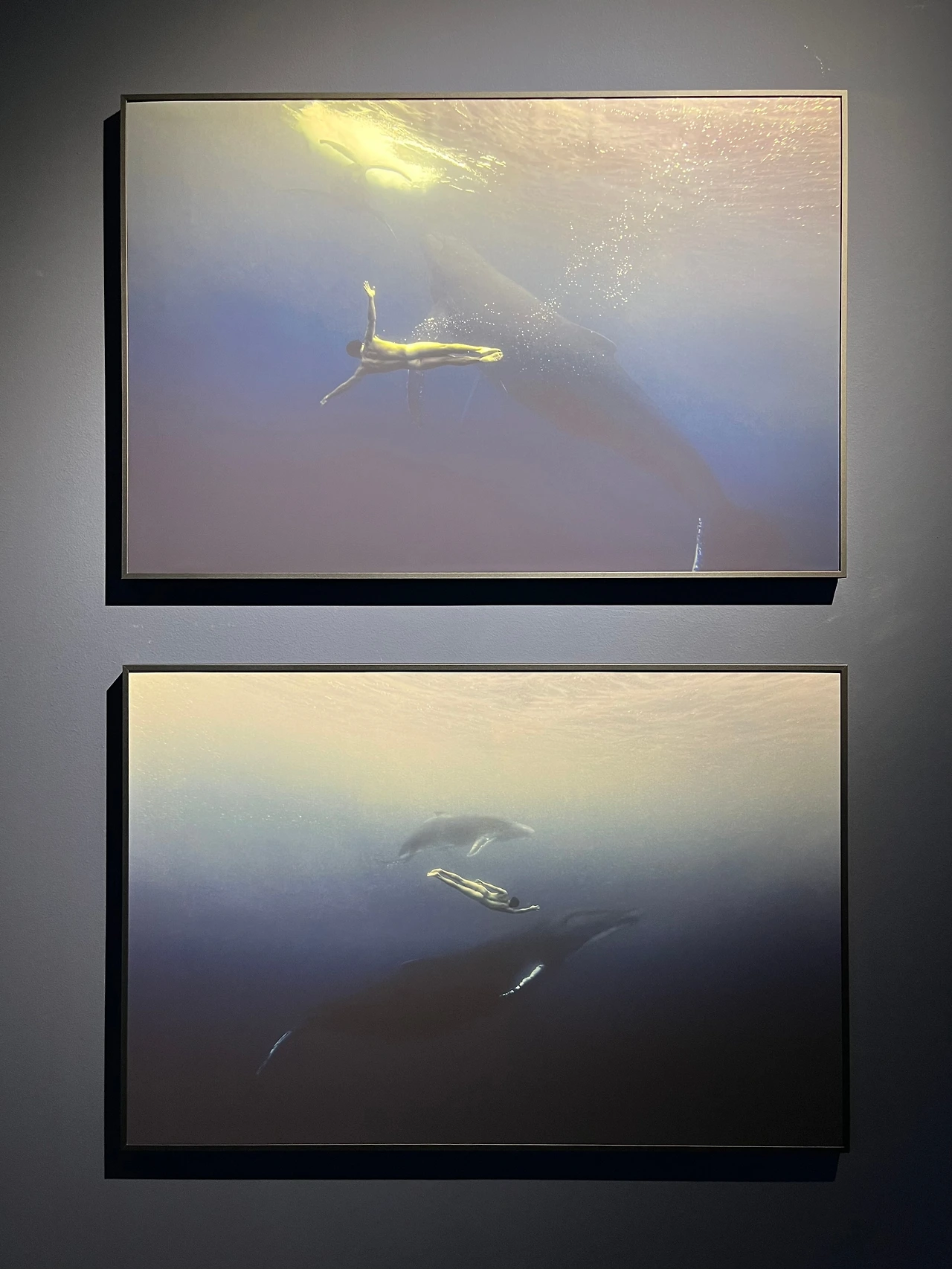 나탈리 카르푸셴코의 이름이 박힌 벽을 지나 사진전이 시작되는 곳으로 들어가면, 마치 책의 소제목처럼 Ocean Breath라는 섹션이 등장한다. 요즘 고래를 다루는 작품이 많이 등장하는 것 같은데, 그만큼 고래의 특징으로 제시되는 여러가지 특징들 — 매체에 '다정함'이라는 단어로 통칭되는 — 이 현대 사회에서 추구하는 가치관과 일맥상통하기 때문에 그런 것이 아닐까 싶다.
