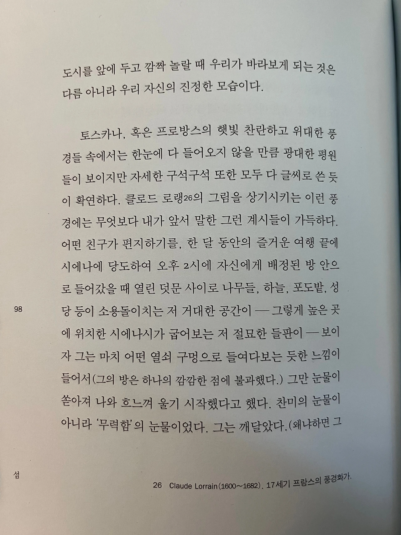 "우리의 마음을 가득 채워 주어야 마땅할 것들이" 파 놓는 "무한한 공허"란 무엇일까. "하나의 깜깜한 점"이 흘리는 "'무력함'의 눈물"은 어떤 감정으로부터 쏟아지는 걸까. 일전에 친구로부터 자신은 "수직적 압도감보다 수평적 압도감을 더 좋아한다"는 말을 들은 적이 있는데, 지금 생각해보니 그때 그 '압도감'이 무슨 뜻인지 조금도 이해하지 못했던 것 같다 — 감동 정도로만 생각했던 것이다. 캐나다 알버타 주의 밴프를 다녀오고 나서, 특히 레이크 루이스를 다녀오고 나서 친구의 말도 조금 새롭고 『섬』도 다르게 읽힌다. 호기심을 가지고 처음 읽는 글과 공감하고 재해석하며 읽는 글은 아주 다르다. 전자를 미지의 세계에 홀로 발을 들여놓는 것에 비유한다면, 후자는 이미 왔던 길이지만 무심결에 지나친 작은 것들도 눈에 들어와서 또 다른 길을 걷는 느낌. 다 읽고 나서는 마치 새 책을 읽었다는 느낌이 들 정도로. 그래서 영화든 책이든 두 번 이상 보는 것을 좋아한다.