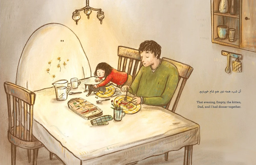 이 그림책의 정식 제목은 "Empty and Me: A Tale of Loss and Friendship(Empty와 나: 상실과 우정의 이야기)"입니다. 이란의 작가인 Azam Mahdavi가 쓰고, Maryam Tahmasebi가 그린 그림책으로, 2023년에 페르시아어와 영어가 병기된 버전으로 미국에서 출간되었지요.