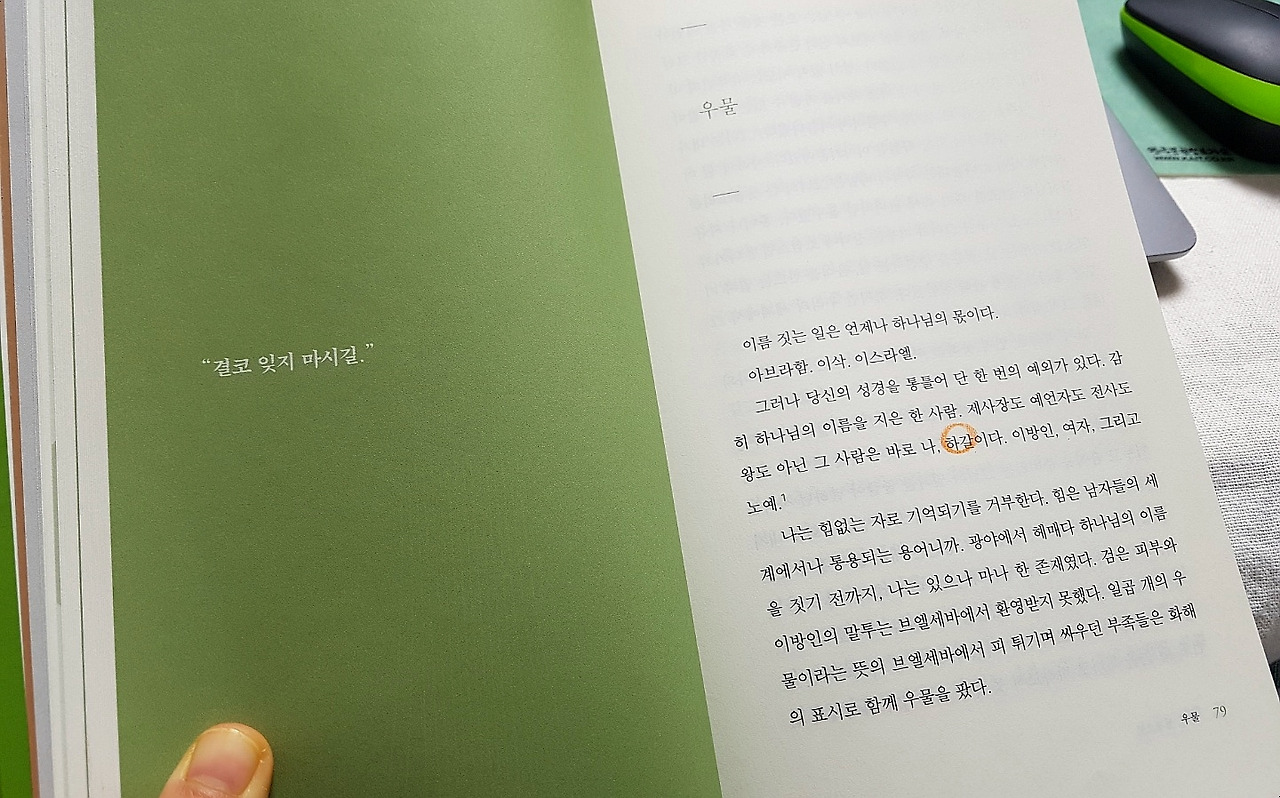 거의 모든 광야 드라마는 '이름 짓기'에서 절정에 이른다. 모든 희망이 사라진 것처럼 보이는 때에 하나님을 만났던 장소, 당신만의 광야에 반드시 이름을 붙여야 한다. p. 108
