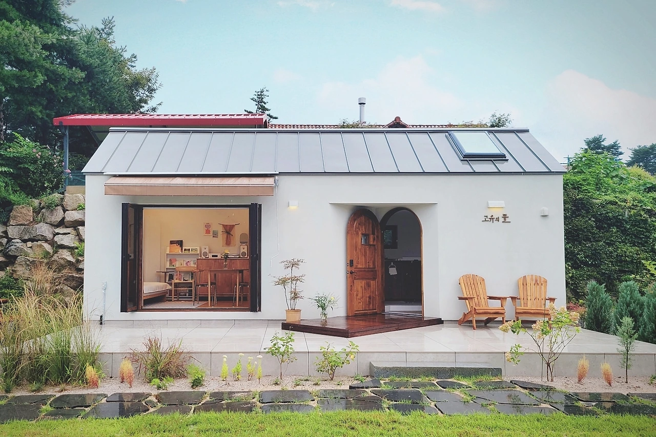달갑지 않은 시간이었지만 앞으로 사업파트너(?)로서 어떻게 소통을 해야 하나 점검할 수 있었던 건 감사한 일이다. 내가 더 배려와 경청을 익혀야 하는데 이번에도 느린은 나의 마음을 들어주었다. 새로운 디자인으로 가기로 한 것이다. 지금 우리 민박이 하얀 집일 수 있었던 이유! 디자인이 바뀌니 조금은 러프했던 숙소 이름도 바꾸게 되었다. 원래는 느린의 별명 따라서 느린 산장, 슬로피스, 슬로우캐빈 등이 이름 후보였는데 싹 다 날려버리고 저의 별명을 따라서 지금의 '고유의 뜰'이 되었답니다. 내가 생각해도 얄미운 고집의 뜰 주인장..