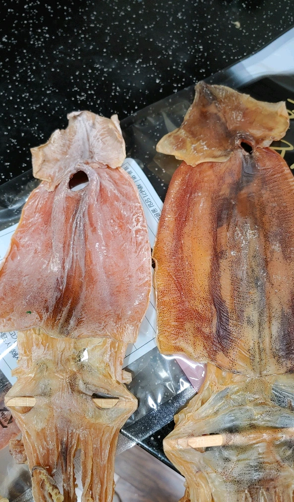 2마리에 100그람짜리를 했더니 사이즈가 작다. 색은 지인을 통해 산 울릉도 오징어가 더 붉었다. 온라인은 지인을 통해 산 것보다는 오래됐는지 하얀 분이 좀 있었다.