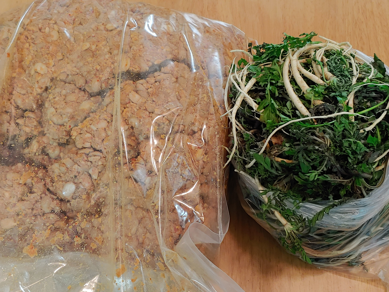 차려주신 밥으로 부족하셨는지 떠날 때 깨끗하게 씻어서 다듬어 냉동한 냉이을 한가득 주셨다.