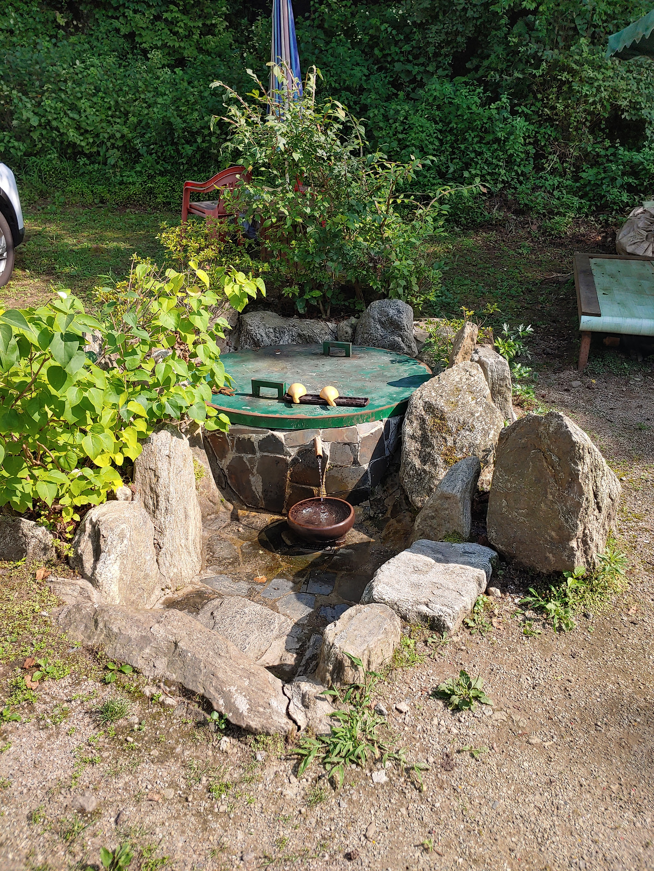 아이들과 함께 아이스크림 먹고 음료를 마시면서 주변을 둘러보는데 아담하니 좋았다. 약수터도 있다. 시원한지 확인하기 위해 살짝 물을 만져 보지만 더워서 그런지 생각만큼 차갑진 않았다.