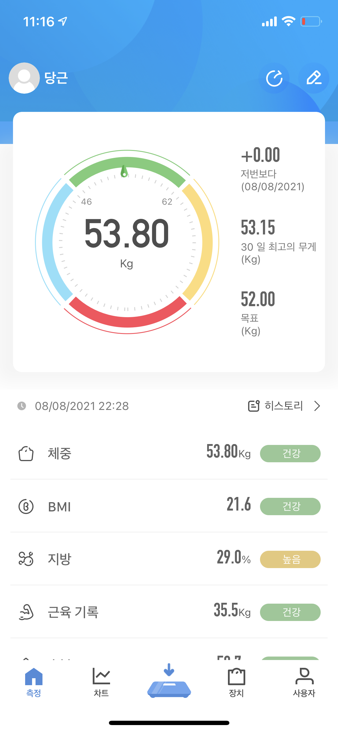 현재 몸무게 : 53.8kg