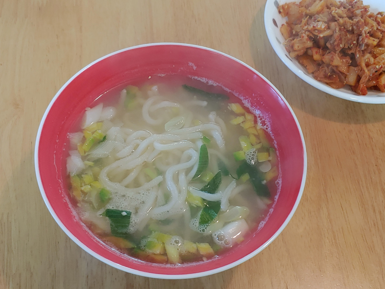 깔끔한 칼국수는 잘 익은 김치와 함께하면 그 누구도 부럽지 않은 한 끼가 된다.