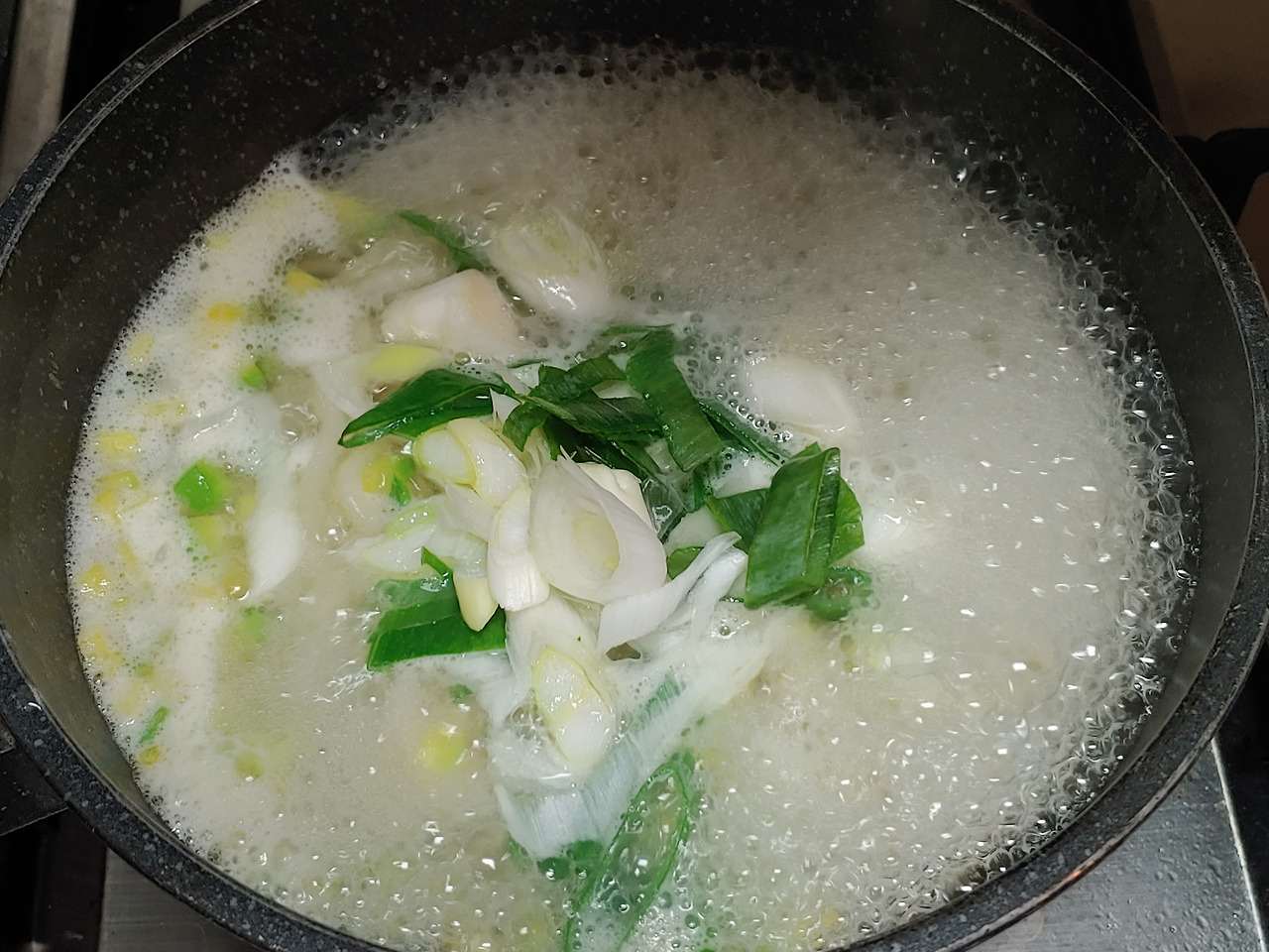 간은 소금으로 한다. 멸치 육수를 잘 내면 소금을 조금만 넣어도 되지만 12시에 한의원 예약을 해서 시간이 얼마 없어 소금이 평소보다 더 필요했다.