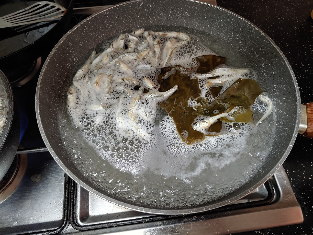 (나의 모든 육수는 멸치가 들어간다. 고기 육수를 그리 좋아하지 않기에 떡국이든 미역국이든 멸치 육수를 주로 이용한다. 이때 멸치 상태도 상당히 중요한데 좋은 멸치가 좋은 육수를 내는 건 말하지 않아도 다 알 것이다.)