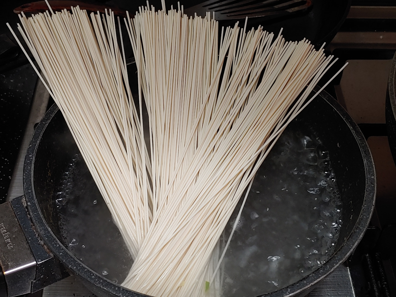 중간에 찬물을 넣어 줘야 쫄깃하다고 해서 습관적으로 하는데 한번 중간 물 투여할 때와 아닐 때를 비교해 보고 싶다.