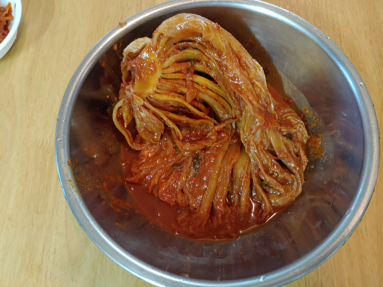 작년에 엄마가 만들어 주신 김치를 꺼내 국물을 짜고 송송 썰어 참기름, 설탕, 고춧가루, 통깨를 넣고 버무리면 끝.