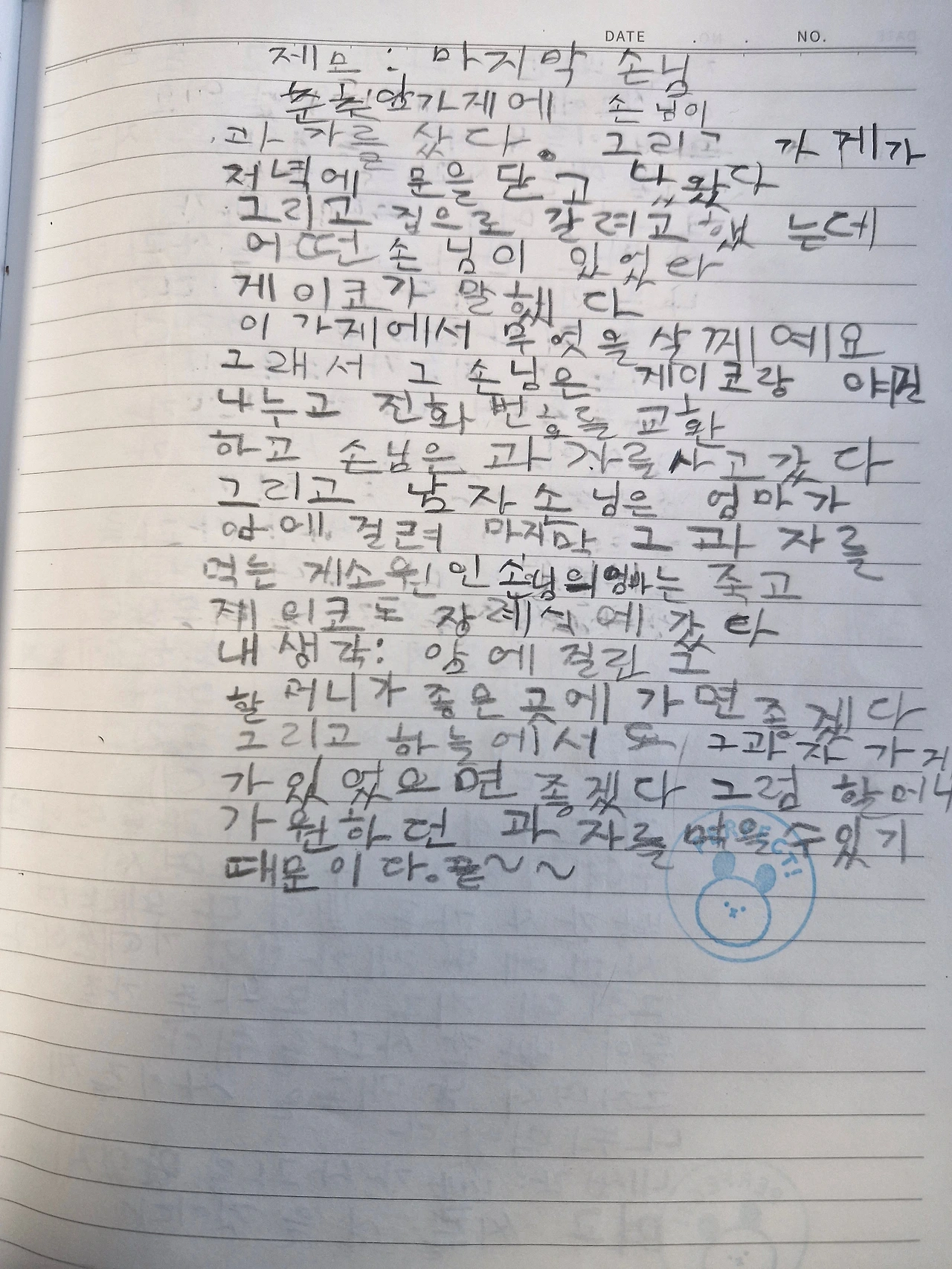 몇 개를 지적했지만 이미 써버린 독후감을 모두 지울 수는 없었고 다음 독후감에 참고해 쓰라고 말해줬다.