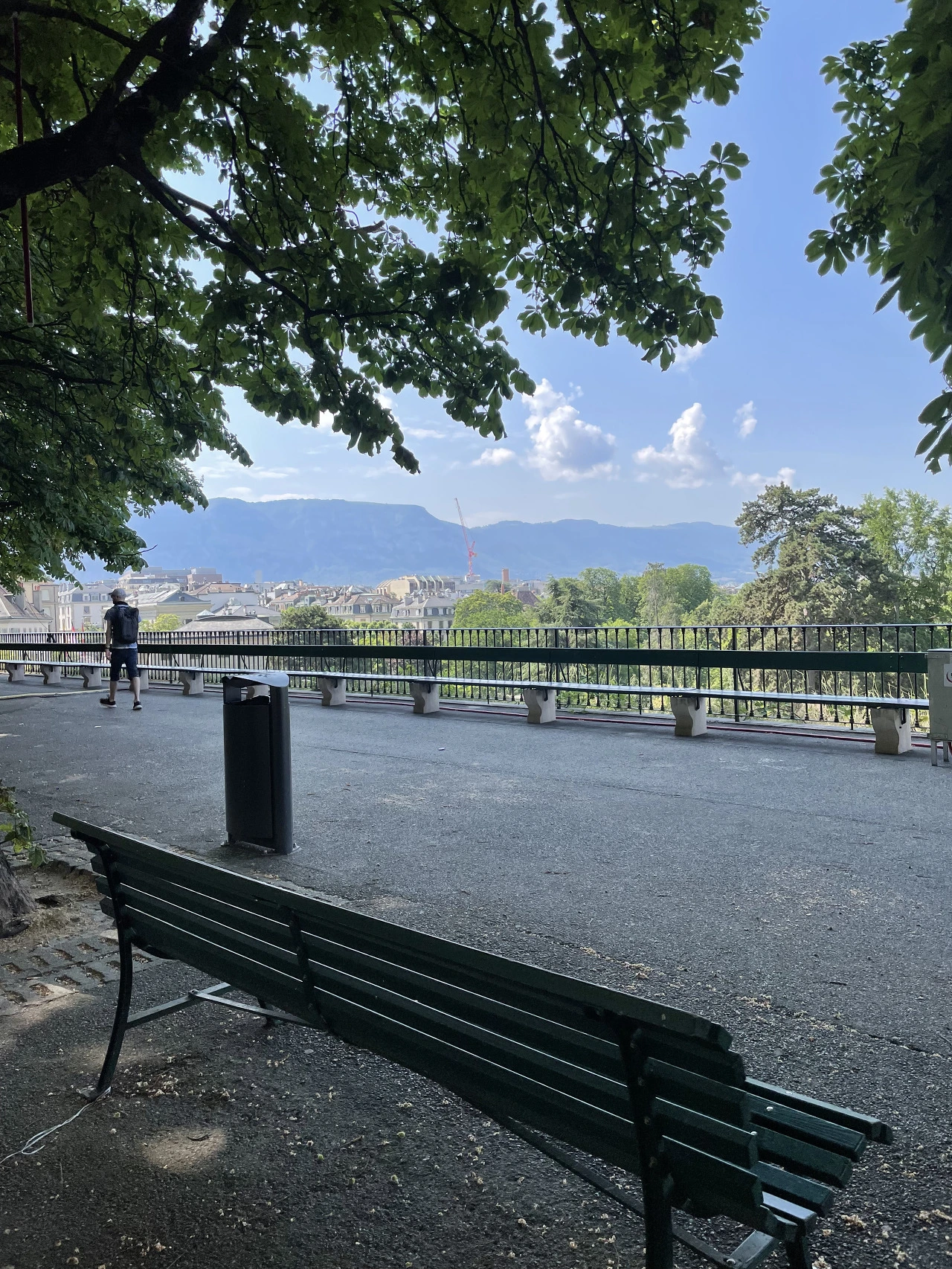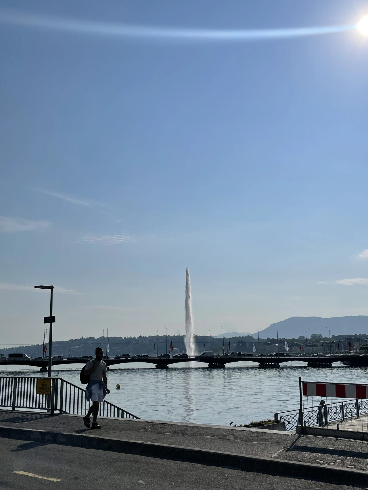제네바 당일치기 여행을 가지 않겠냐는 친구의 제안에 덥석 버스표를 예매했다. 여행을 떠나기 전 배탈이 나 여행을 미룰 수밖에 없었다. 원래 여행을 하기로 한 날보다 이틀이 지난 뒤, 새벽 6시에 제네바행 버스를 탔다. 동이 트는 아침에 스프링클러가 열심히 밭에 물을 뿌리는 풍경을 바라보던 눈은 이내 점점 무거워졌다. 얼마나 잤을까, 얕은 언덕들은 온데간데없이 사라지고 높은 산맥에 둘러싸여 있었다. 한참 ‘여기가 스위스구나!’ 감탄하고 있을 때, 그제야 창밖에 조금 있으면 스위스 국경에 도착한다는 안내판이 보였다. 아무런 검사 없이 국경을 넘었고, 국경을 지난 지 얼마 안 돼 호수가 있는 도심에 도착했다. 선크림을 한 번 더 바르고 요금 폭탄을 피하고자 데이터가 잘 꺼져 있는지 확인하고 나서야 제네바에 발을 디뎠다.