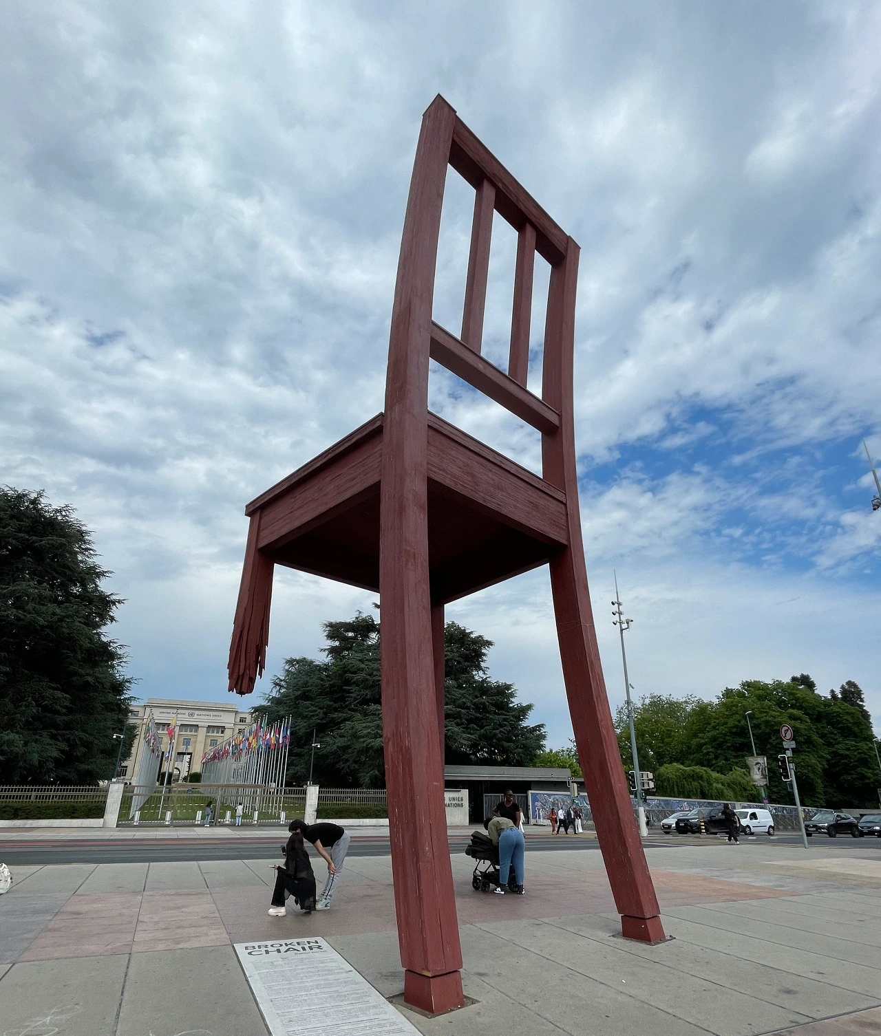 숲길을 걷고 아파트를 지나자, 회사 본사처럼 생긴 큰 건물이 나왔다. 그리고 수많은 물줄기가 뿜어져 나오는 분수와 다리 하나가 부서져 있는 조형물이 있었다. 이 예술작품은 무기로 인한 피해자들을 상징하고 국가에 이에 대한 대책과 행동을 촉구하는 상징물이다. 부서진 의자 뒤엔 스위스 제네바 유엔 사무국이 있었다. 수많은 유엔 회원국 국기 사이에서 한눈에 태극기를 찾을 수 있었다. 유엔 사원증을 멘 직원들을 마주쳤는데 그들이 멋있어 보였다. 유엔이 미국 중심의 세계질서를 공고히 하고, 신식민주의적인 기구라는 비판을 듣기도 하지만, 세계적 차원에서 인류 공동의 위기에 대응하는 기구로서 기여하는 부분이 굉장히 크다고 생각한다. 유엔 직원들이 자기 능력을 활용해 세계 불평등을 해소하기 위해 기여하기에 언젠가 내가 하는 일이 세계 불평등 감소에 기여했으면 좋겠다고 생각했다. 프랑스로 돌아가는 버스를 타기 위해 정류장으로 향하다 프랑스 대로에 위치한 유엔난민기구를 발견했다. 기사에서만 접하던 기구들을 눈앞에서 볼 수 있어서 정말 만족스러웠다. 이 자극을 개인적 삶과 공공선이 조화로운 삶을 살기 위한 밑거름으로 삼고 싶다.