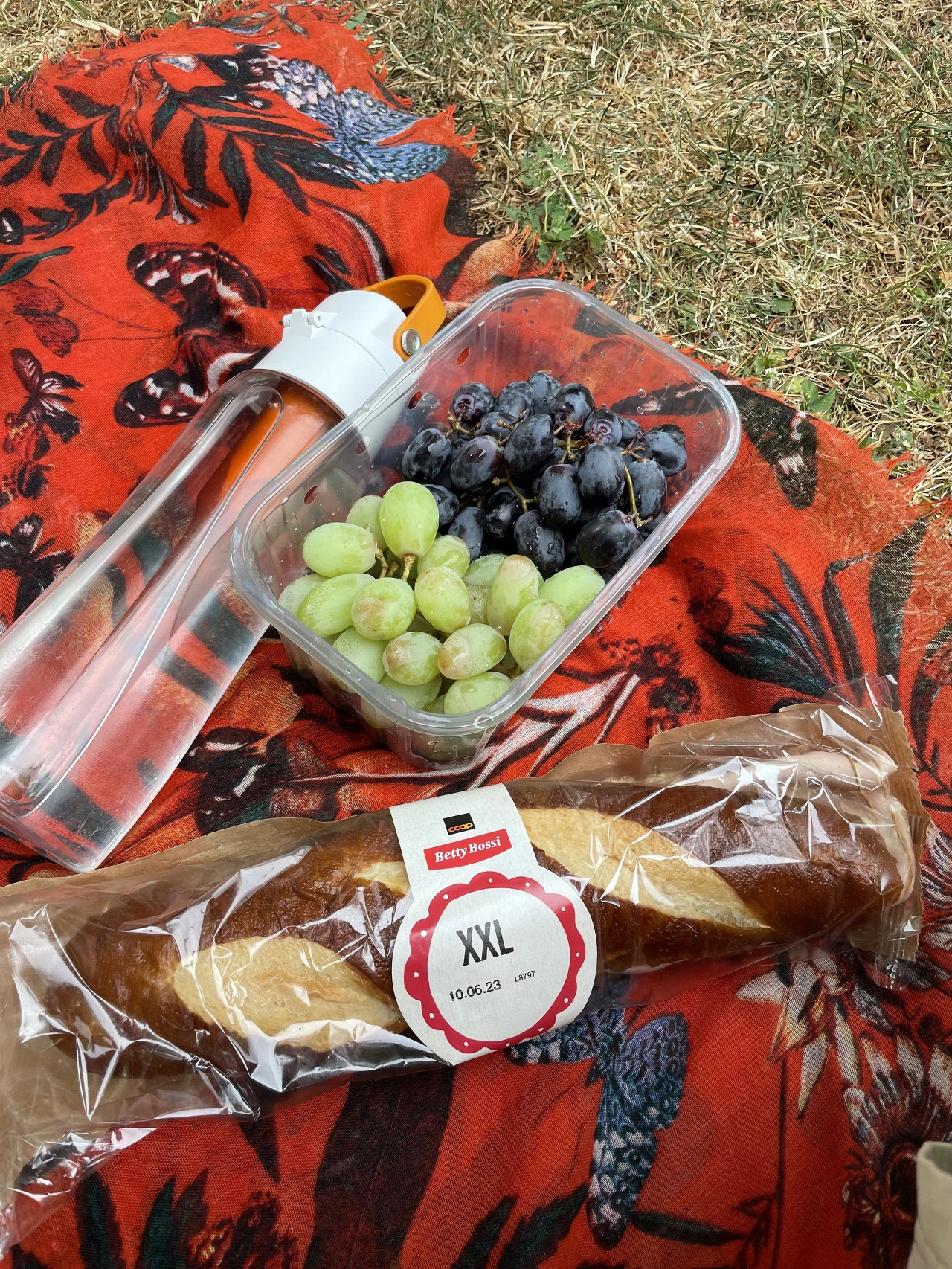 점심으로 먹은 샌드위치가 다 소화되어 배가 고파져 슈퍼에 들어갔다. 고심 끝에 샌드위치 하나와 포도 한 팩을 샀다. 공원에 있는 분수에서 포도를 씻고, 그늘에 자리를 잡고 샌드위치를 반으로 쪼개 나누어 먹었다. 이렇게 3시쯤 스위스에서 마지막 식사 겸 피크닉을 했다. 공원엔 유치원에서 나온 아이들이 바나나를 나누어 먹으며 나를 신기하게 쳐다보았다. 약간의 빗방울이 떨어지긴 했지만, 평화로운 8.5 스위스 프랑 짜리 만찬을 망칠 순 없었다.