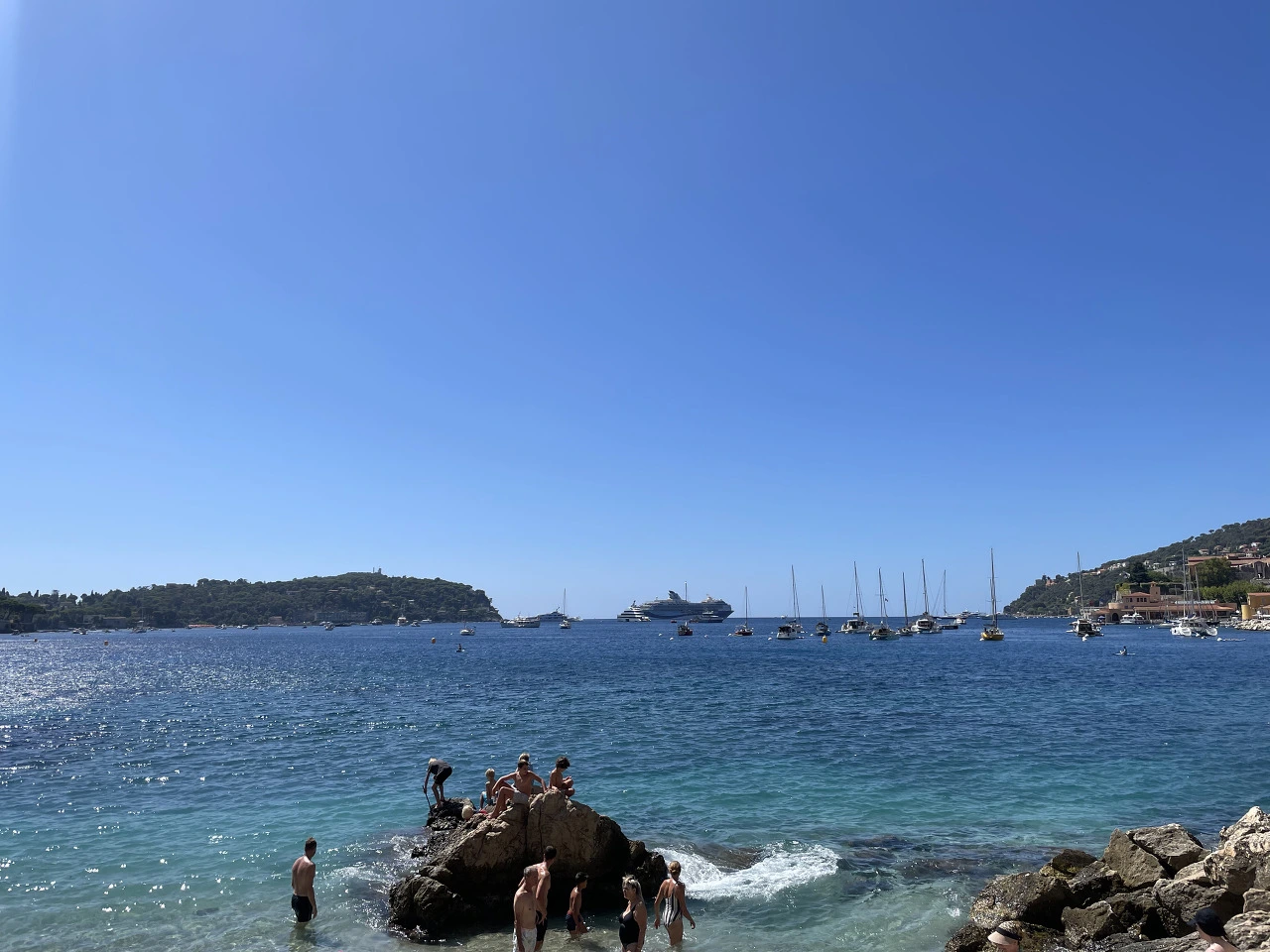 해변에서 충분히 시간을 보냈고 전망대에서 빌프랑슈 쉬르 메르를 관망하러 갔다. 땀을 흘리며 심한 경사를 오르며 담장을 가득 채운 붉은 꽃들과 점점 탁 트이는 풍경을 에너지 삼아 오르막길을 올라갔다. 옷이 땀에 젖기 시작하자 차도 옆에 위치한 전망대에 도착했다. 산 위에 지어진 집들, 태양과 바다를 만끽하는 사람들, 광활한 지중해 그 위에 떠 있는 많은 배가 한눈에 들어왔다. 사진으로 그 아름다움을 담으려고 애썼지만, 결국 실패했다. 해안가를 따라 놓인 철길로 기차가 들어왔고, 다시 집으로 돌아가기 위해 기차역으로 내려왔다.