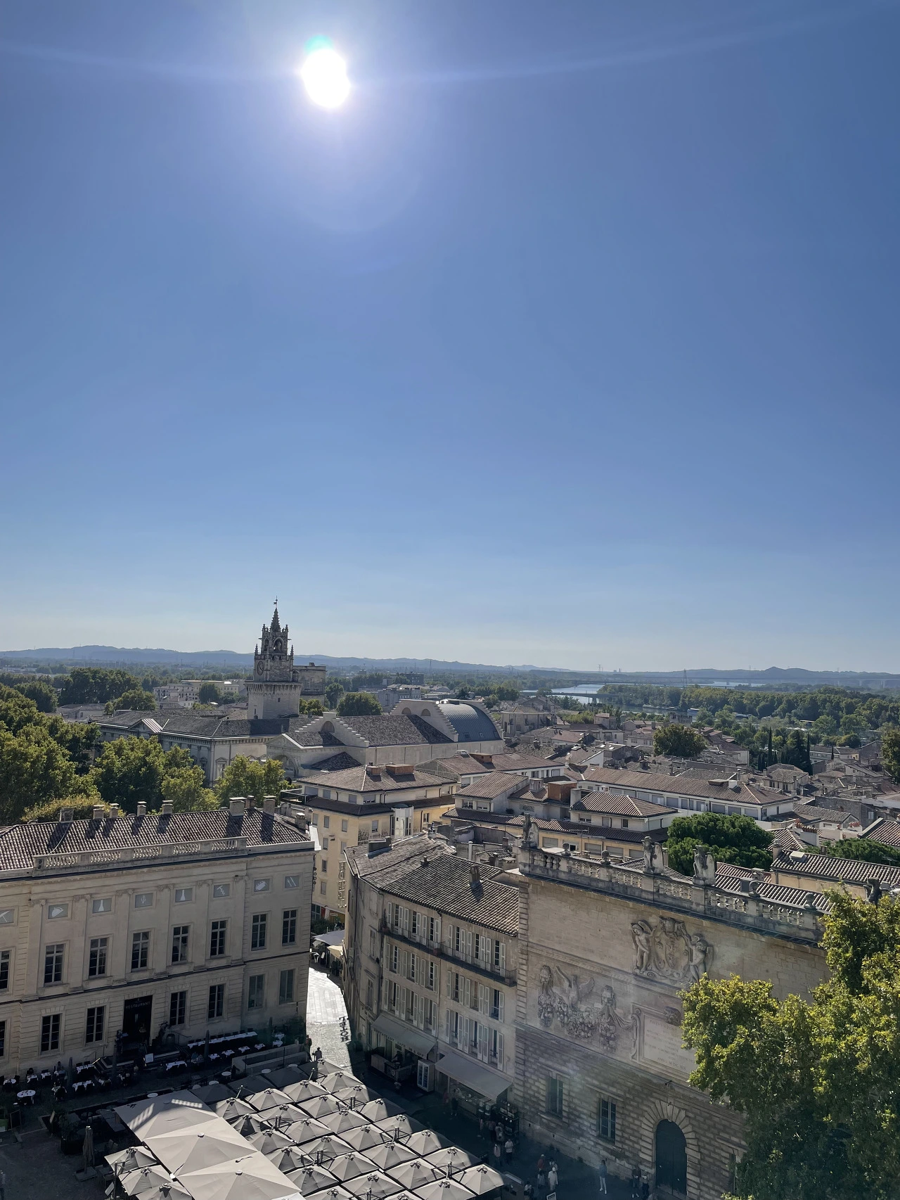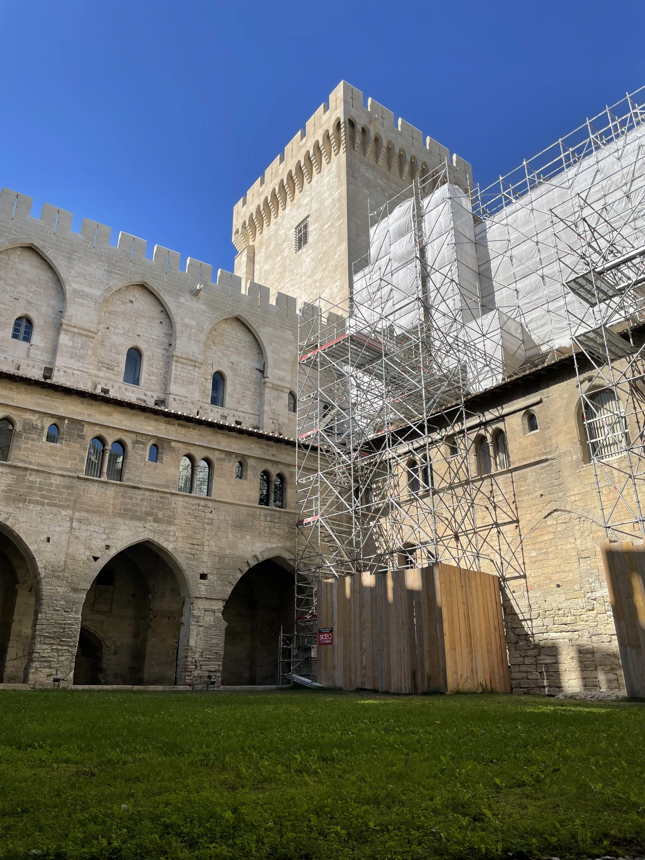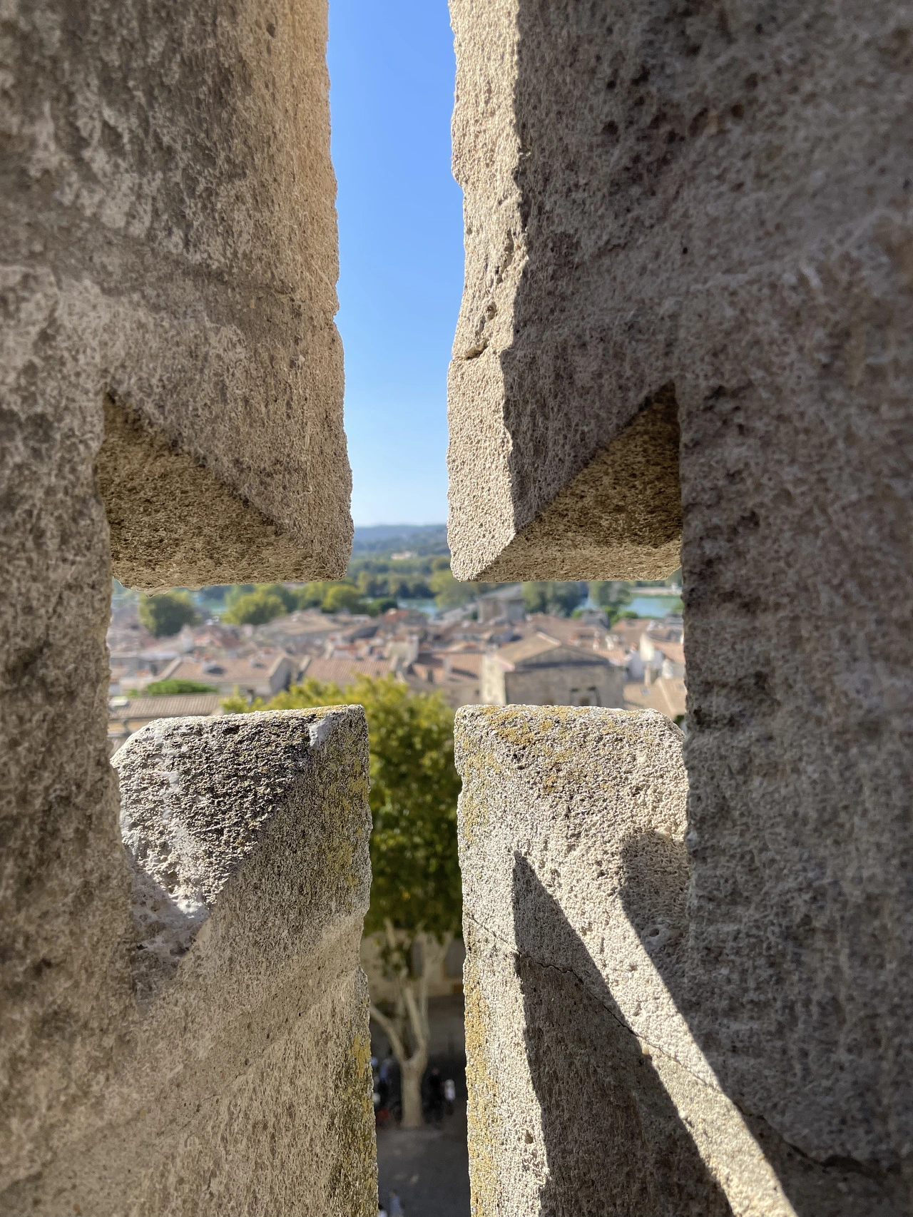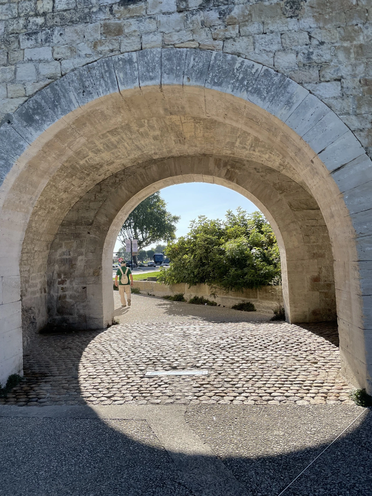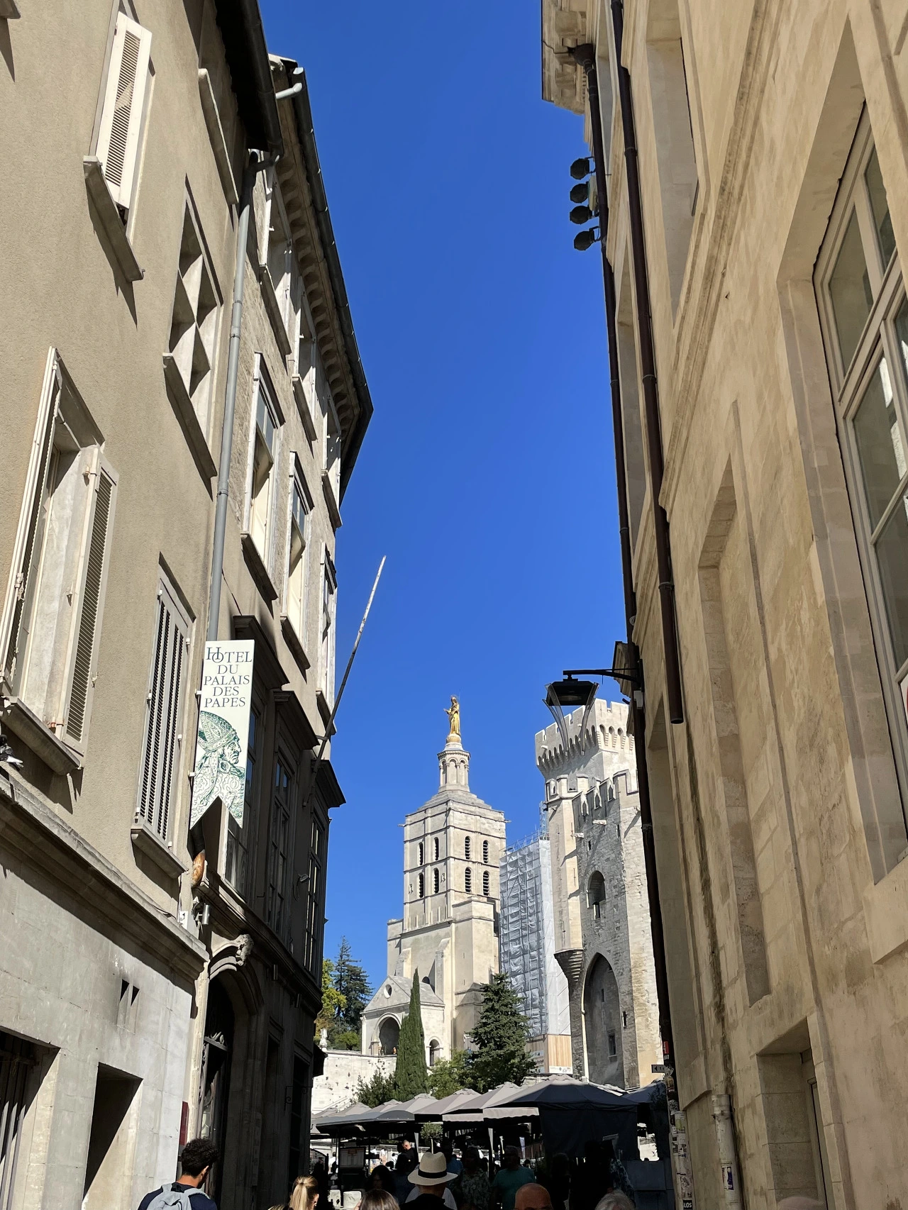 기차역을 나서자, 가장 먼저 성벽이 눈을 사로잡았다. 오랜 역사를 지닌 도시답게 단단해 보이는 성벽으로 둘러싸여 있었다. 이곳에 정착한 로마인들은 1세기에 도시를 보호하기 위해 도시를 성벽으로 둘렀다고 한다. 도시를 지키던 건축물은 무너졌고, 13세기엔 해자가 있는 이중성벽을 쌓았다. 또한 아비뇽은 알비 십자군을 이끌고 남프랑스로 진군하는 프랑스 국왕 루이 8세가 도시를 지나가는 것을 허락하지 않았고, 그 대가로 성벽은 다시 무너져 내렸다. 그럼에도 아비뇽인들은 다시 성을 쌓았다. 현재 남아있는 성벽은 도시에 교황청이 생기고 나서 지어진 건축물이다. 교황 인노센트 6세(Innocent VI)는 1355년에 늘어나는 인구와 도시 규모에 걸맞은 성벽 건설을 명령했다. 1370년 교황 우르바노 5세(Urbain V) 치하에서 완공되어 지금까지 아비뇽을 지키고 있다. 교통이 발달하면서 편의상 성벽 곳곳을 뚫어 도로를 만들었다. 그렇게 뚫린 도로 중 기차역에서 가장 가까운 통로를 지나 시내에 들어섰다. 시청 앞을 지키고 있는 커다란 가로수들을 지나 아비뇽 교황청 앞 광장에 다다랐다.