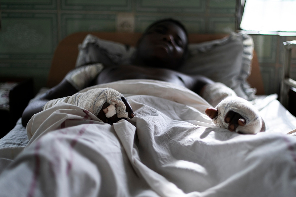 "폴은 몸에 다섯 발의 총알이 박힌 채 이곳에 도착했습니다. 각 손에 하나씩, 팔에 두 개, 허벅지에 한 개의 총상이 있었죠. 폴이 병원에 온 다음 우리 외과의사들은 두 번의 수술을 했고 이제 위험에서 벗어났습니다. 왼손 상태가 매우 좋지 않았지만 가까스로 살릴 수 있었습니다." _포뉴이 / 국경없는의사회 의사