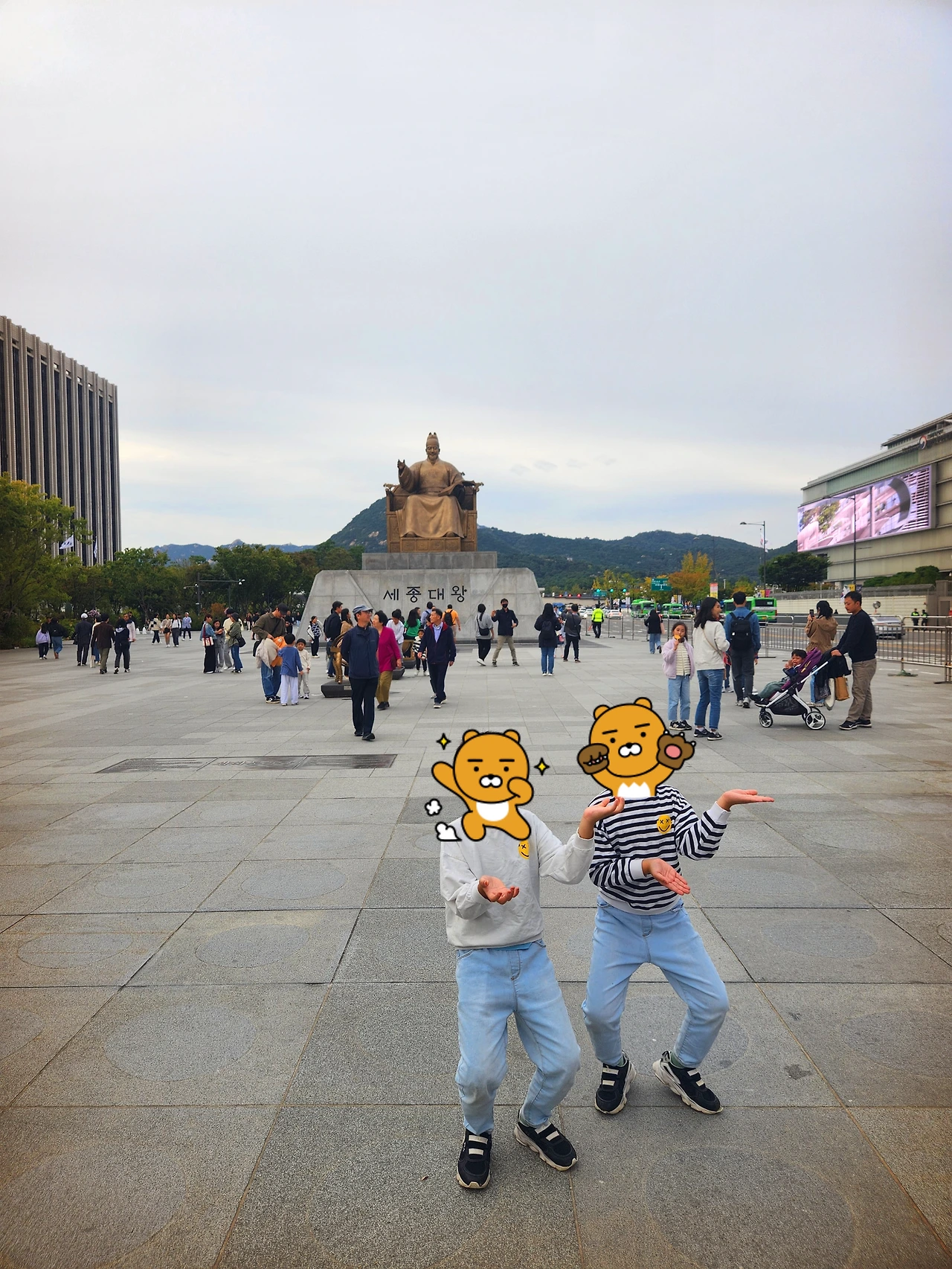 청량리에서 지하철을 차고 광화문에 도착했다. 근엄한 동시에 백성들을(관광객들을) 굽어보는 자애로운 자태의 세종대왕 동상에 감탄한 우리 일부가 있었고, 사진 찍기를 마치자마자 '배고파요'을 입에 달기 시작한 아홉 살 두 아이가 있었다.