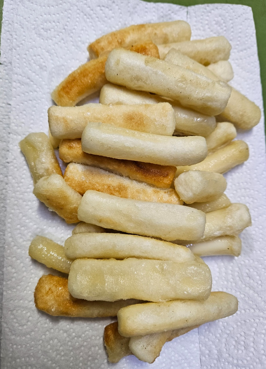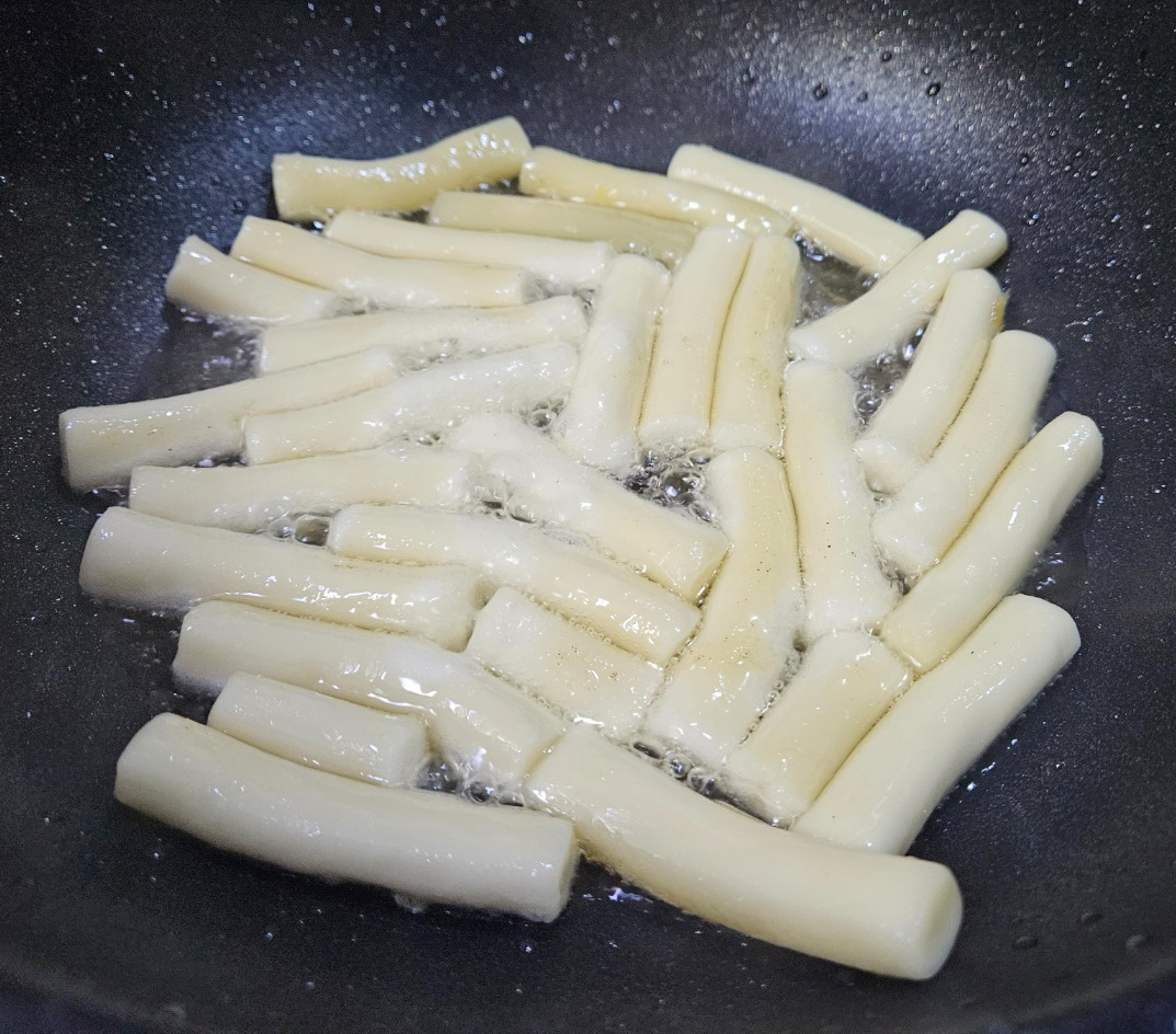기름을 넉넉히 두른 팬에 떡을 구워준다. 노릇하게 구워지면 키친타올에 건져 잠시 두며 기름을 빼준다.