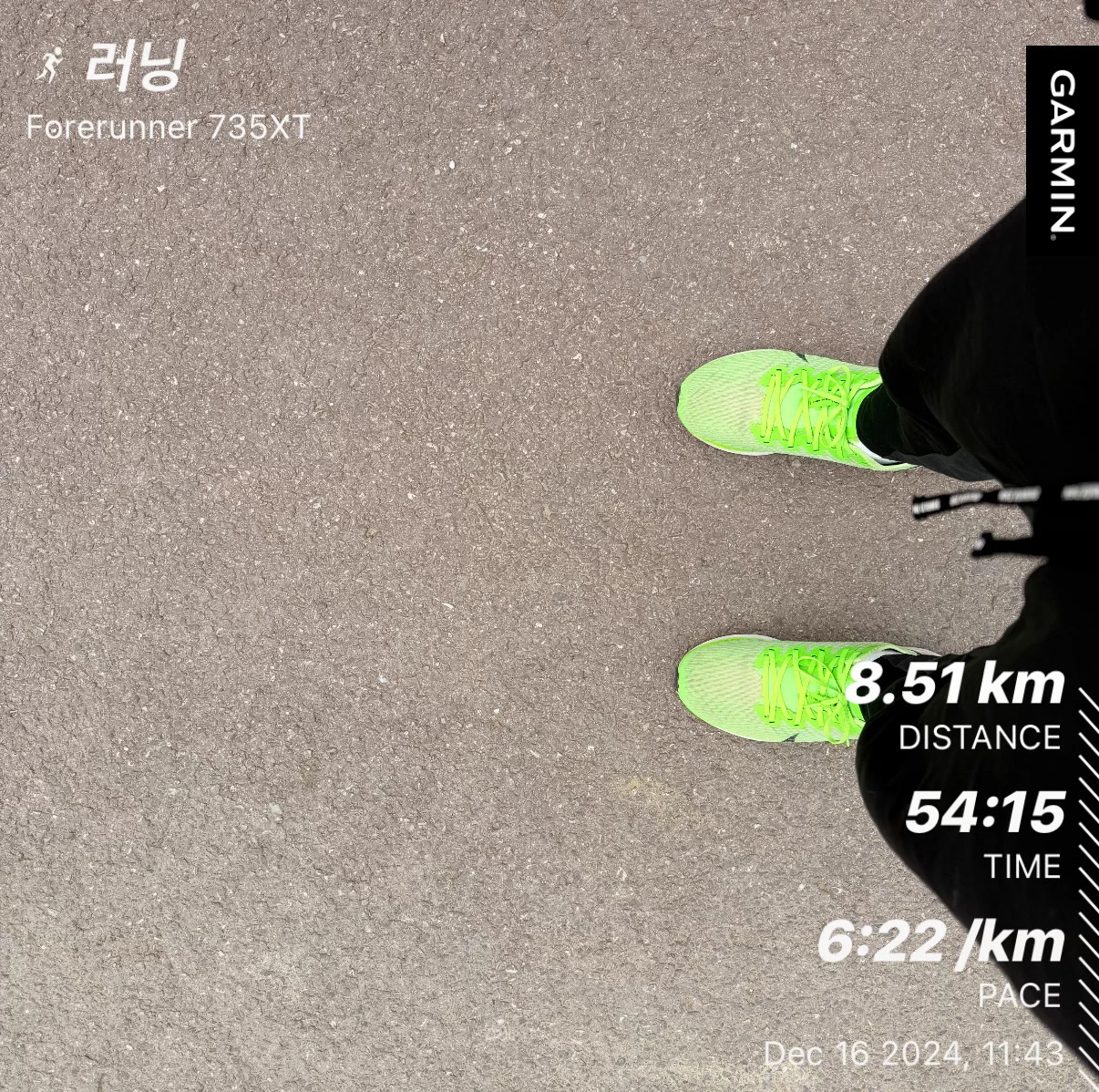 발바닥에 통증이 사라지니 은근히 욕심이 생겼다. 자신감이 생겨 저번보다 더 많이 달릴 수 있겠다 싶었다. 무리하지 않는 선에서 조금 긴 거리를 달리기로 했다. 결국, 8km 달렸다. 달리는 동안 몸도 계속 풀려서 단계적으로 8분대의 페이스로 시작해서 5분대까지 단축했음에도 불구하고 통증은 없었다. 페이스는 문제 없었지만, 심폐지구력 문제만 있었다. 4분대까지 올려보고 싶었지만 5분대에서 호흡이 무너지는 것을 느꼈고, 무리하지 않았다.