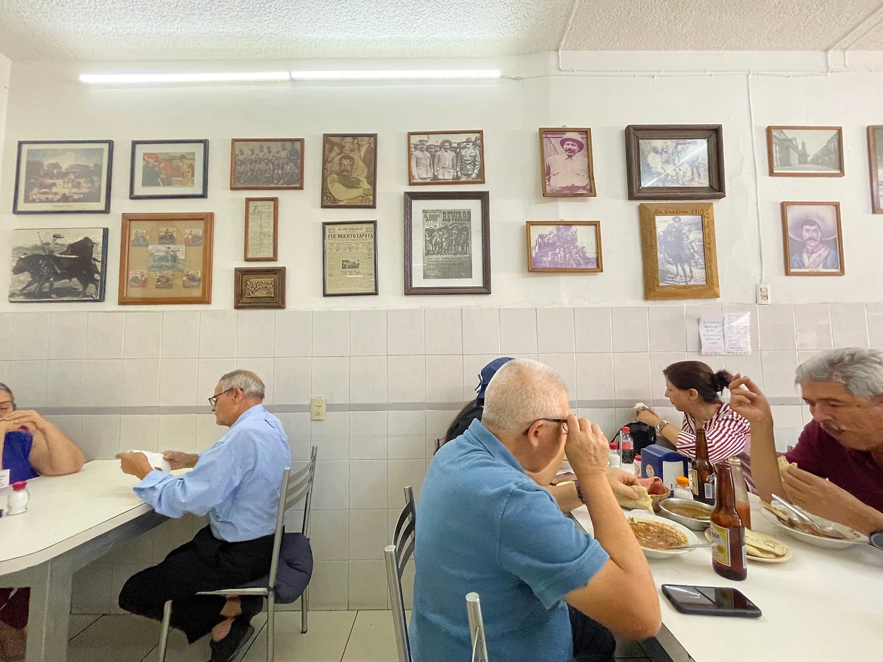 내가 찾은 식당은 1948년부터 비리아를 전문으로 한 역사가 꽤 깊은 곳이었는데 점심 무렵에 가니 사람들이 꽉 차 있었다. 이곳에선 비리아 타코보단 비리아 스튜 가 메인이었는데 비리아 스튜를 시키면 함께 나오는 또르띠야에 싸 먹는 형태다. 물론 비리아 타코로도 따로 판매하지만, 식당 내부에 있는 대부분 손님들은 저마다 커다란 스튜 그릇을 앞에 두고 먹고 있었다.