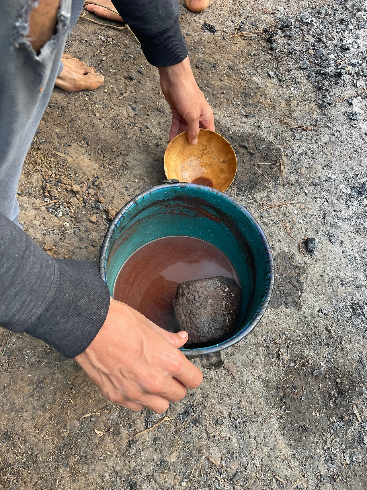 차가운 물에 들어가 몸에 묻은 진흙을 씻고 나오니 아까 사용한 돌의 열기로 끓인 핫초코를 한 컵 건네받았다. 맛은 싱거운 코코아 맛이었는데, 거의 탈진한 상태에서 마시는 이 음료는 그야말로 훌륭한 에너지 보충제였다.