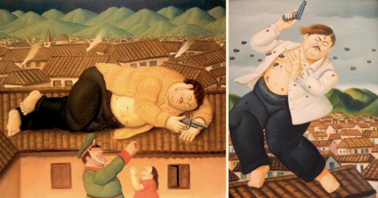 아이러니한 점은 페르난도 보테로가 1999년, 파블로 에스코바르가 미국 마약단속국(DEA)에 의해 최후의 죽음을 맞이하던 순간을 마치 영웅의 전사처럼 표현한 그림을 발표해 논란을 야기하기 했다는 것이다.