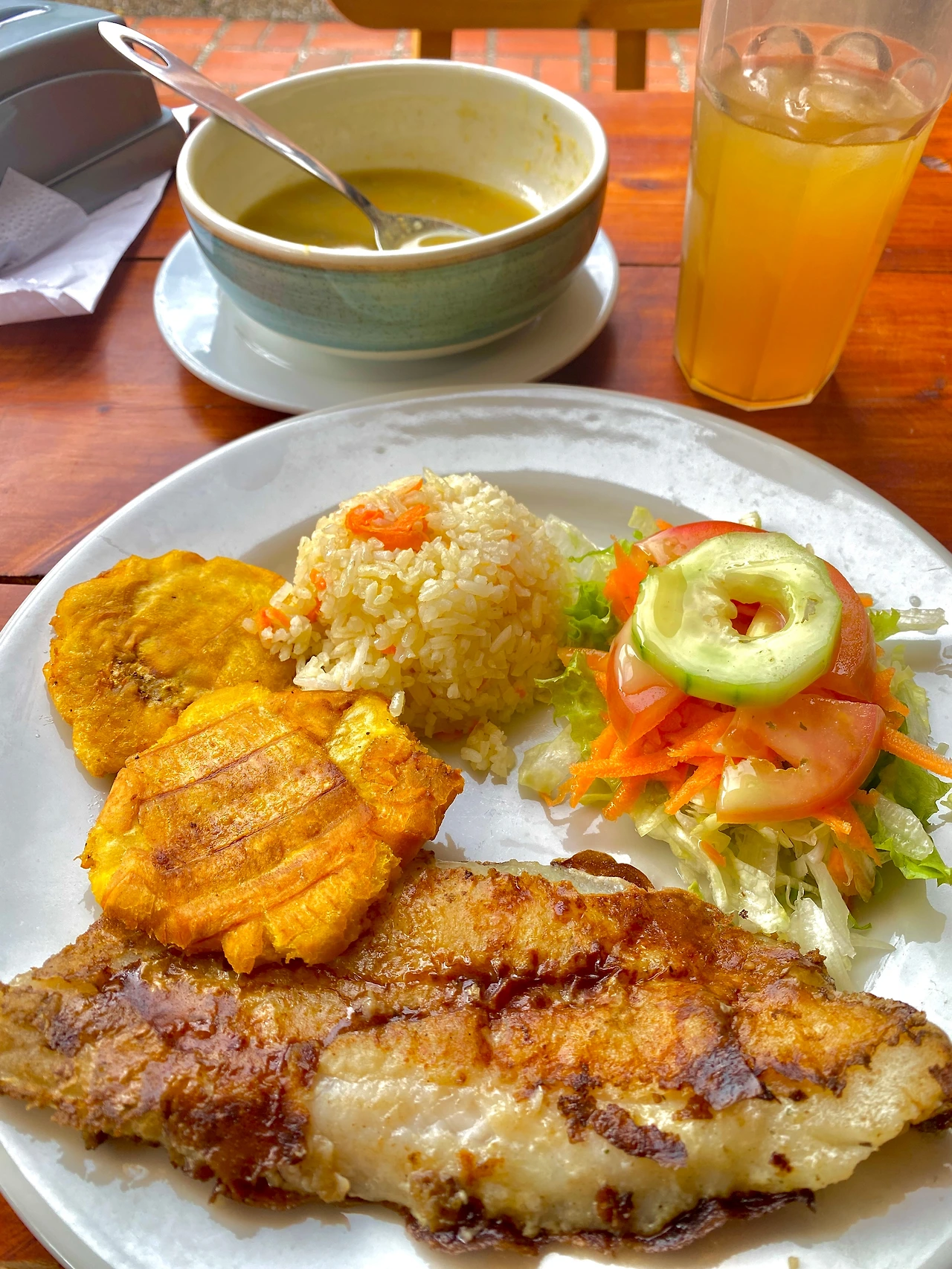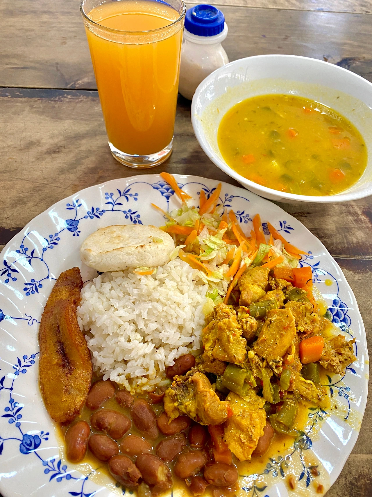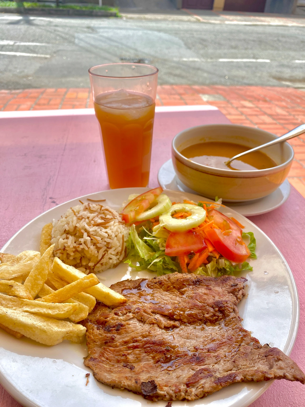 어느 나라에 가나 가성비 국룰은 기사식당이 아닐까 싶다. 걸쭉하게 끓여낸 야채수프에 카레 파우더를 넣은 양념으로 조리한 닭고기, 쌀밥, 구운 플라타뇨와 콩조림, 망고주스는 질리지 않게 매일 무난하게 먹을 수 있는 집밥에 가까웠다. 간이 세지도 않았고 무엇보다 야채 가득 넣은 수프가 마음에 들었다.