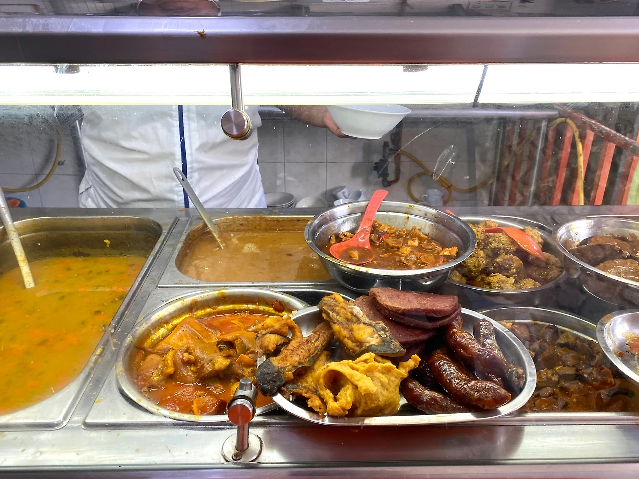 앉아서 주문받는 시스템이 아니라, 급식받는 것처럼 밥, 고기, 샐러드류 코너로 이동하며 원하는 것을 선택하면 한 접시에 담아준다. 고기류도 약 4~5가지 정도 있었는데 우리나라로 치면 제육볶음이냐 닭다리 간장볶음이냐 뚝불이냐 수준의 선택지였다.