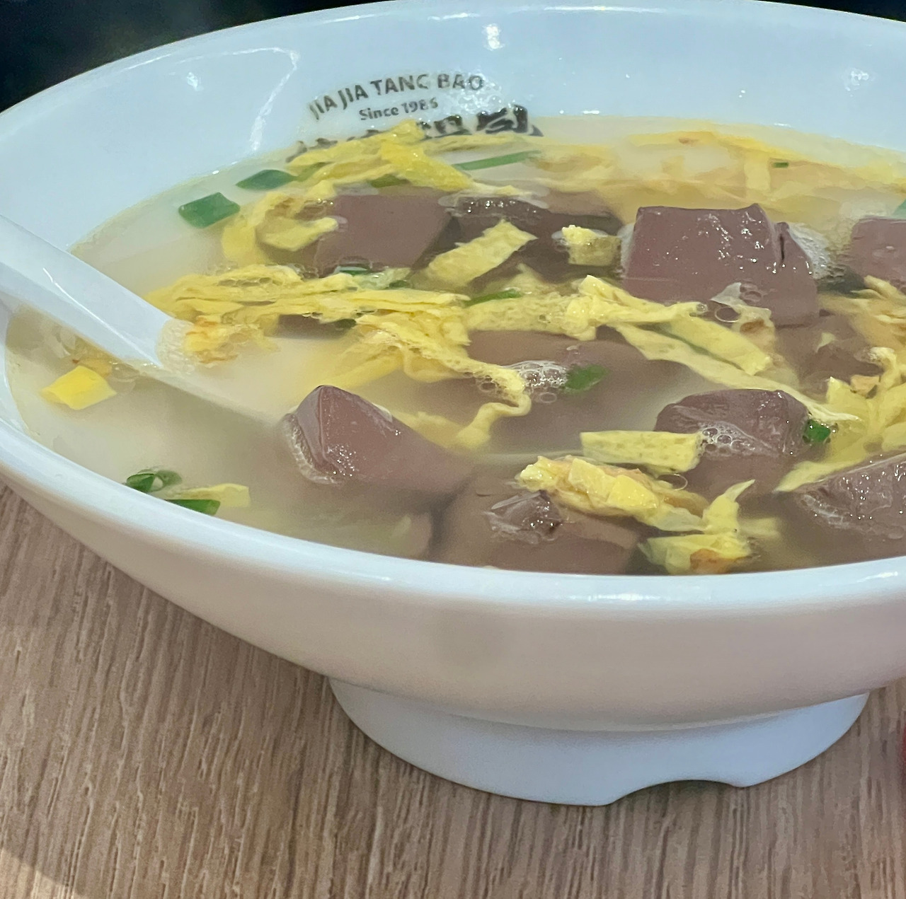 샤오롱바오가 나오기 전에 먼저 나온 그녀의 오리피 선짓국은 꽤 낯설었다. 매콤하게 끓여 비린내를 최대한 제거하는 방식으로 나오는 한국의 선지해장국과 달리, 이곳의 오리피 선짓국은 일단 맑았다. 그리고 선지를 깍둑설기 형태로 작게 잘라 듬뿍 넣어 계란국에 넣은 모양이었는데, 비린내가 나지 않을까 궁금했다. 나도 선짓국을 주문할까 살짝 고민하다가 이후 오리피 선짓국으로 유명한 난징을 갈 생각이었기 때문에 이곳에선 샤오롱바오만 즐기기로 했다.