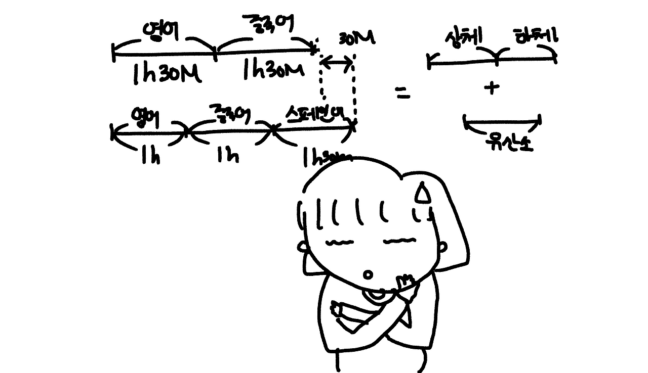 그나마 다행인 것은 난 시험 목적이라기 보단, 결국엔 회화과 커뮤니케이션 목적이기 때문에 상대적으로 부담감은 덜하다는 것이다. 하지만, 앞으로 매일 외국어 공부에 투자해야할 시간의 총량이 그 전보다 조금 늘어날 수 밖에 없다. 왜, 운동 잘하는 사람들이 헬스장에 체류하는 시간이 점점 길어지는 것처럼 말이다.