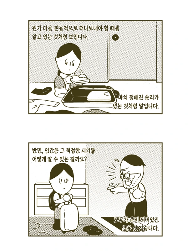 가족과 살고 싶지 않은 것이 아니라 내 삶을 선택하고 살아보고 싶을 뿐인데. 요즘은 나를 이해하지 못하는 가족들의 등쌀과 회유를 견디며 ‘독립’을 계획하고 있다. 가족의 동의를 구하지 못한 채 인생의 새로운 국면에 접어드는 일은 생각보다 쉽지 않은 것 같다. 그러나 그로부터 오는 슬픔이나 좌절보다는 '나로 사는 것'에 대한 갈망이 지금의 나에게는 더욱 간절하다. 주변의 우려처럼 '여자 손해'로 끝이 날 지 모르지만 그런 구시대적 불안 속에서 현재를 낭비하고 싶지 않다. 결국 내가 사는 삶, 나의 선택이 아닌가. 애초에 원하던 대로 애인과의 동거 형태가 될 지는 잘 모르겠다. 하지만 지금의 나는 스스로 홀로될 준비가 된 것만은 분명한 것 같다.