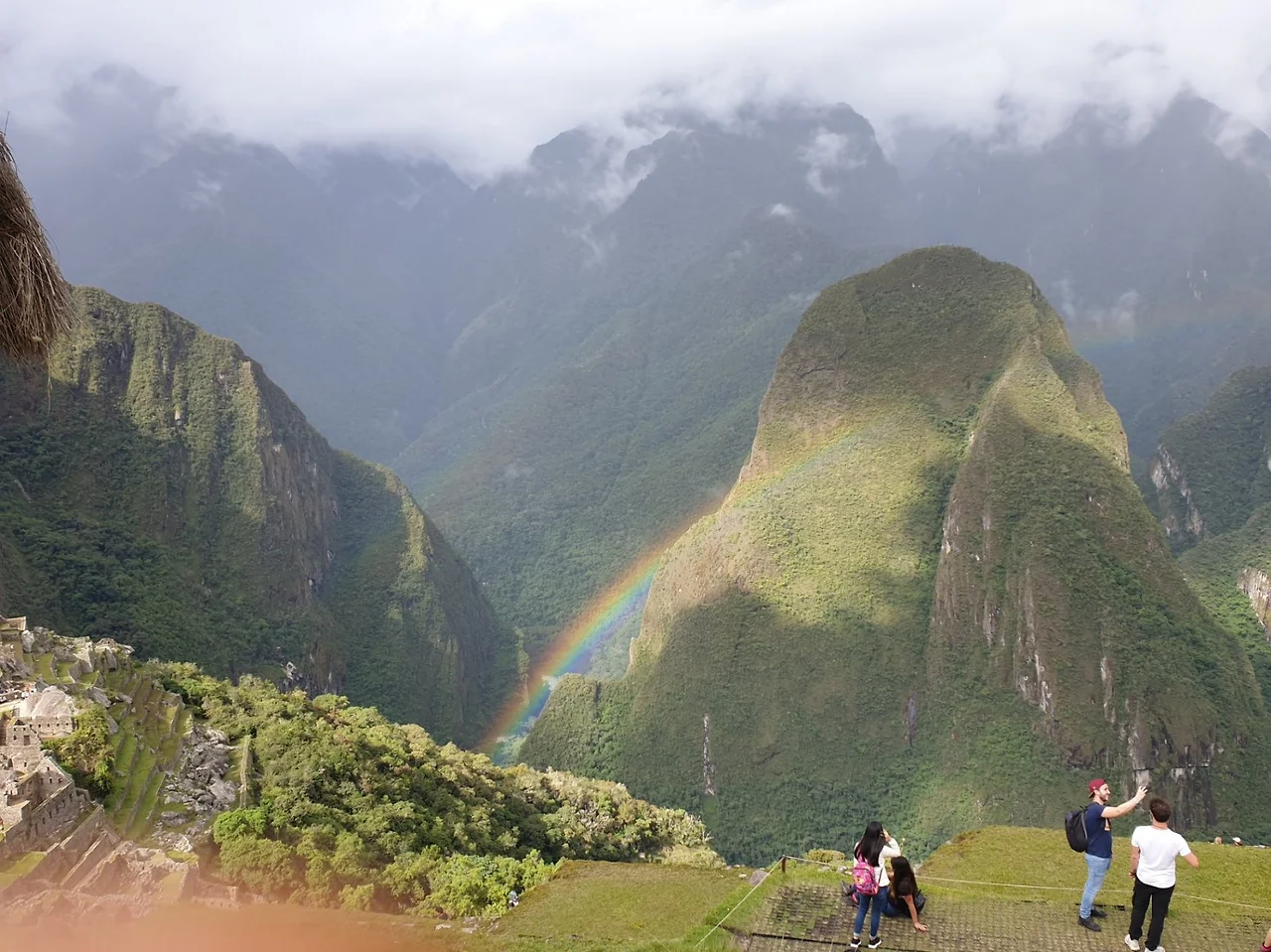 입구에서 출발해 계단 몇 개를 올라가지 않아서 소낙비가 퍼부었다. 갑자기 구름마저 몰려와서 앞서가는 사람조차 보이지 않았다. 구름에 가린 마추픽추는 미지의 세계에 온 듯했고 비는 그칠 기미가 없었다. 처마 밑에서 한참을 서 있었다. 얼마 지나지 않아서 빠른 속도로 구름이 바깥으로 움직였다. 그러더니 번개처럼 햇살이 솟아났다. 그 와중에 쌍무지개까지 뜬 마추픽추를 봤으니 행운을 잡은 셈이다. 그 신기한 모습에 한참동안 취해서 바라봤다. 마추픽추는 모든 날씨를 말없이 보여줬지만 아무것도 말하지 않았다.