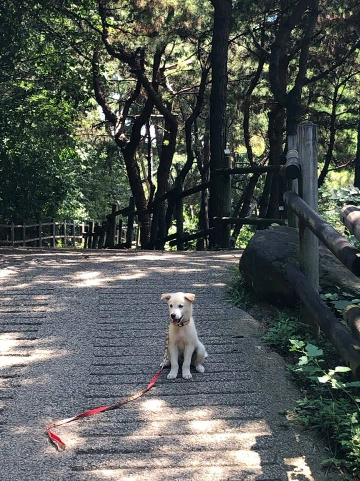 그래도 오빠랑 친해지는 게 중요할 거 같아 친밀감 형성과 신뢰를 쌓기 위해 주말이 되면 오빠가 사는 집 근처 남산으로 데려가 같이 산책을 했다. 물론 줄은 내가 잡았다. (형아가 줄잡는 순간 '얼음'이다.)그런데 아직 새끼인데 우리가 너무 긴 산책을 했는지 힘이 빠진 시키가 가다 말고 멈춰 섰다. 몇 번은 내가 안고 걸었지만 나도 체력이 바닥이 나서 어쩔 수 없이 오빠가 안아야 한다고 했다. 그런데 시키는 정말 정말 힘이 들었나 보다. 그냥 오빠 품에 안기더라. 너무 힘드니 누나고 형아고 다 중요치 않았나 보다. 그런데 신기한 건 그 이후로 시키가 오빠한테 조금씩 마음을 열기 시작한 거 같다. 형아가 줄을 잡아도 곧잘 걸어 다닌다. 이 사람이 자기를 헤치지 않을 거라고 확신했나 보다.