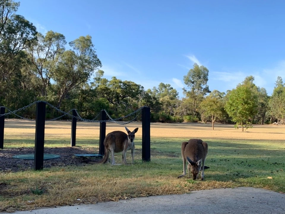 얀쳅 국립공원 (Yanchep National Park)는 호주 여행에서 손에 꼽히는 곳 중에 하나이다. 해가 저물 시간 즈음에 도착하여 얀쳅 국립공원 내에 있는 캠핑지 Harris Park를 가기 위에 입구에 들어서서 얼마지 지나지 않아 드넓은 공원이 보였다. 그리고 너무도 갑작스럽게 내 눈 앞에는 캥거루들이 푸른 잔디 위에서 각자 놀고 있는 말도 안 되는 광경이 펼쳐졌다. 노을 지는 분홍색 하늘에 키 큰 나무들이 우거져있는 국립공원만으로도 가슴이 벅찬데, 동물원에서 보던 생기 없는 캥거루들이 아닌 각자 자유롭게 자신의 시간을 보내는 진짜 캥거루들이 눈앞에 펼쳐졌다. 너무 놀라서 우리는 우르르 달려가 저만치서 캥거루들을 한없이 감상했다. 전 세계에서 유일하게 호주에서만 사는 동물 캥거루, 진짜 호주에 왔구나 싶었다.