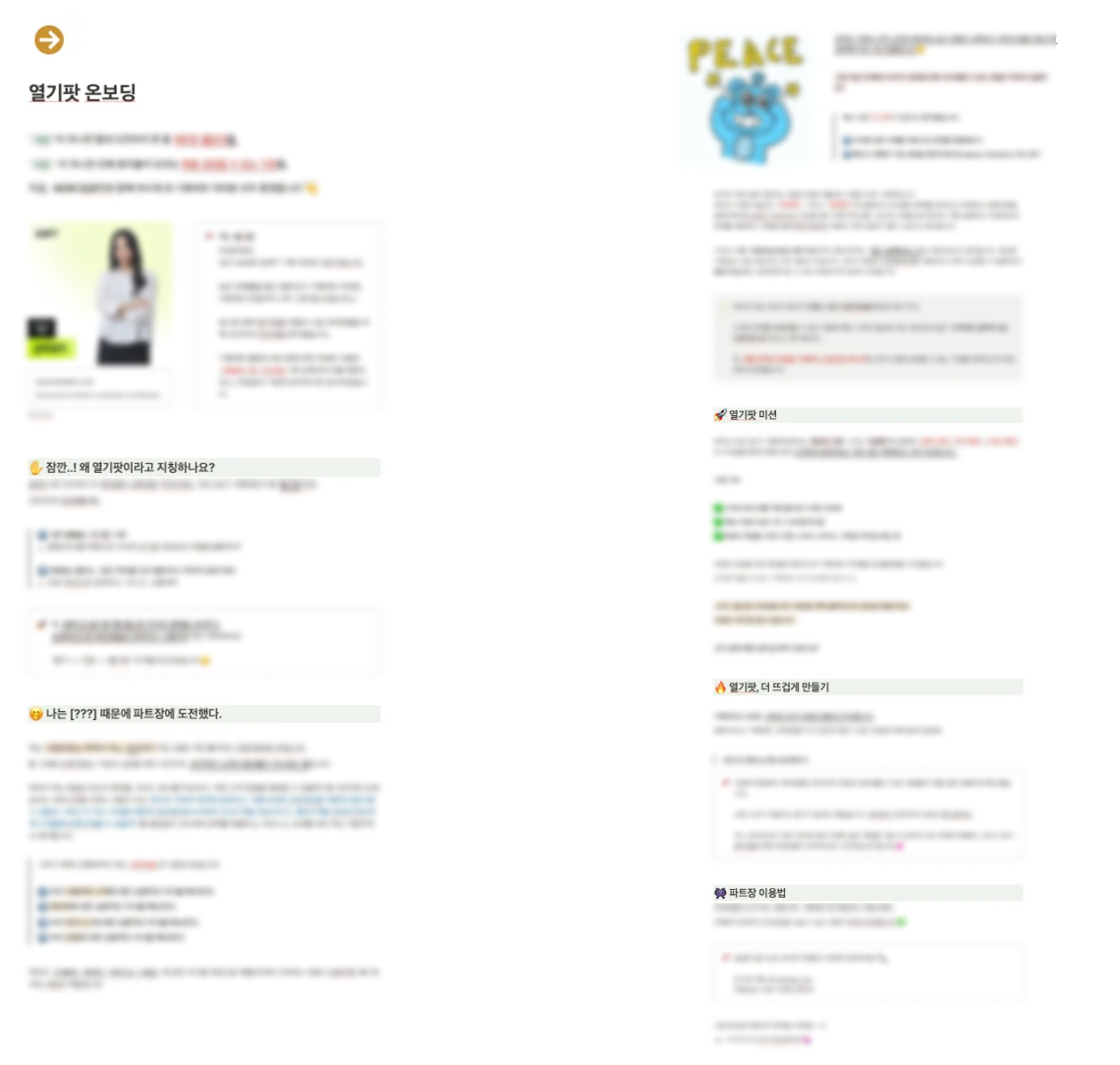 �1-2주간 치열하게 고민하면서 어떤 파트를 만들고싶은지, 어떻게 만들어내고 싶은지에 대한 정의를 내렸고, 그 내용들을 정리해 파트원들에게 공유한 노션