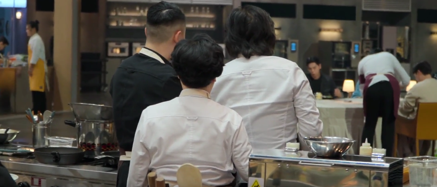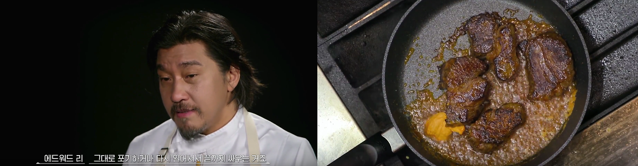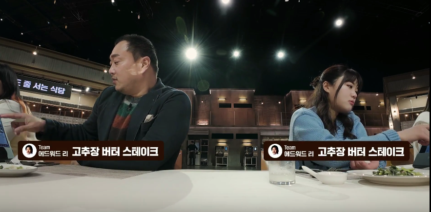 주방에서 고객들의 반응을 관찰하던 중 “고기가 질기다” 라는 고객의 평을 듣고나서 나폴리맛피아셰프가 에드워드 리 셰프에게 바로 전달을 해준다.