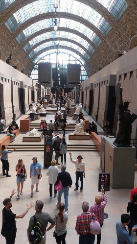 오르세 박물관은 원래 기차역이었다. 입구로 들어서자 높은 천장 위로 보이는 하늘이 기차역을 그대로 연상시킨다. 철로가 놓여 있던 중앙역 자리에는 조각품들이 전시되어 있다. 이 곳은 조각품과 함께 휴식을 취하고 있는 관람객들이 어울려 있어서 어느 게 조각이고 어느 게 사람인지 구분이 가지 않는다. 그만큼 조각품이 정교하다는 뜻이다. 아마 남편도 지금 저기 어디쯤 에서 조각처럼 앉아 쉬고 있을 것이다.