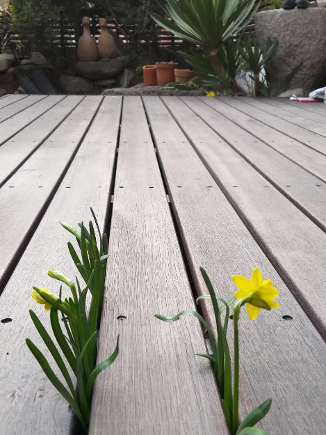 데크 위에 피어있는 수선화