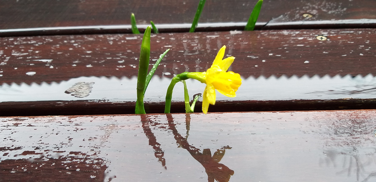 봄비가 내리고 있습니다. 수선화의 잎이 촉촉하게 젖었습니다. 아무나 쉽게 할 수 있는 일이지만 누군가는 당연한 일조차 할 수 없는 게 있습니다. 제 힘으로 스스로 일어서지 않으면 할 수 없는 일을 수선화는 해냈습니다. 수선화는 지금 봄비를 맞고 있습니다. 한껏 손을 뻗어 비를 맞습니다. 자신의 뿌리에 빗물을 전해 주면서 수선화는 스스로 감동합니다.