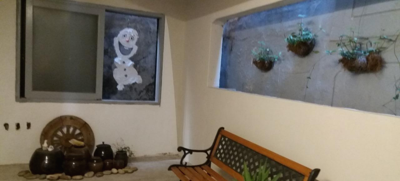 공사 중에 사용하고 남은 회가루가 굳기 전에 어디에 사용할까 하다가 빈 벽에 겨울왕국의 눈사람 울라프를 그려 넣었다 후에 에어 비 앤 비의 이름을 울라프라고 하게 된 건 단순히 그 그림 때문이었다.