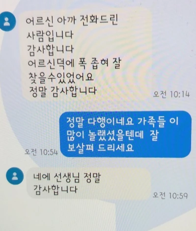 잠시 뒤, 아파트 이층 층계 위에 쓰러져 있는 할아버지를 발견하였다. 어찌 된 일인지 할아버지는 자신의 집과는 전혀 다른 층에서 탈진하여 쓰러져 있었다고 한다. 조금만 늦게 발견했다면 정말 큰일 날 뻔하였다.