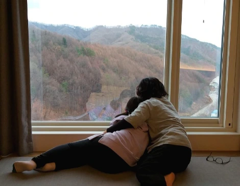 느지막하게 호텔로 돌아와 체크인을 했다. 숲 뷰나 슬로프 뷰 둘 중 원하는 룸을 선택하라고 한다. 눈이 라도 왔더라면 당연히 스키를 타고 활강하는 모습이 보이는 슬로프 뷰를 원했겠지만 딸네와 달리 우리 부부는 숲 뷰를 원했다.
