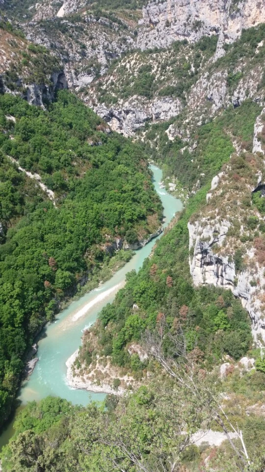 미국의 그랜드캐년에서는 겹겹이 쌓인 지층아래로 유유히 흐르는 콜로라도 강물을 보며 인간의 무력함을 느꼈었는데 이곳 베르동협곡은 거대한 절벽아래로 흐르는 알프스빙하의 옥색 물빛에서아름다운 자연을 창조한 신을 떠올리게 한다..
