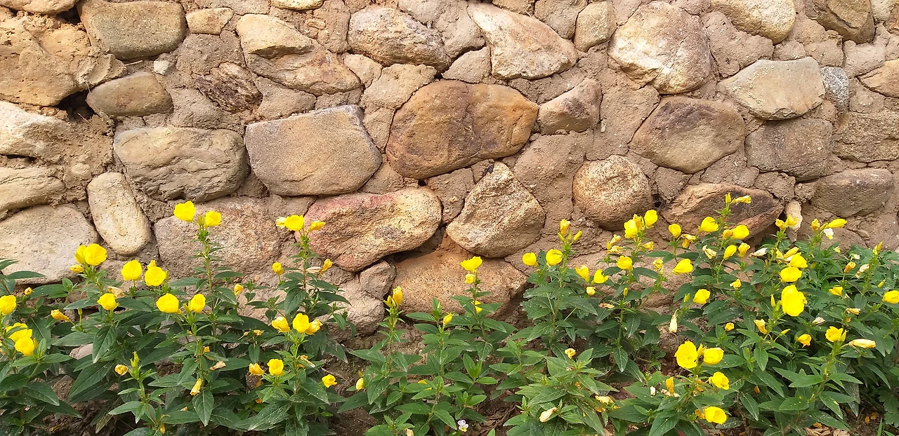 우리 집 화단에도 몇 그루 달맞이 꽃이 피어 있고 화원과 공원에서도 노란 달맞이꽃 무리를 흔하게 보았지만 지금 저 돌담장 아래 핀 달맞이 꽃처럼 정겹지는 않았었다